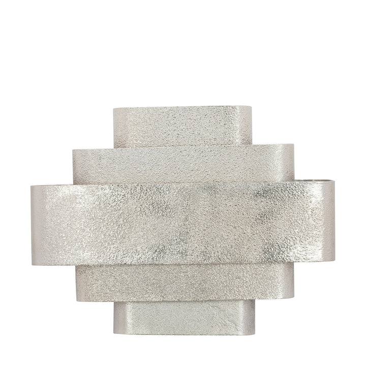 Glam up your interior scheme with our striking wall sconce. It showcases horizontal layers made of a Textured Aluminum Brass Sheet and structured in varying sizes for a distinguished design. This piece will fill your home with enticing and relaxing light, making it ideal for any setting.