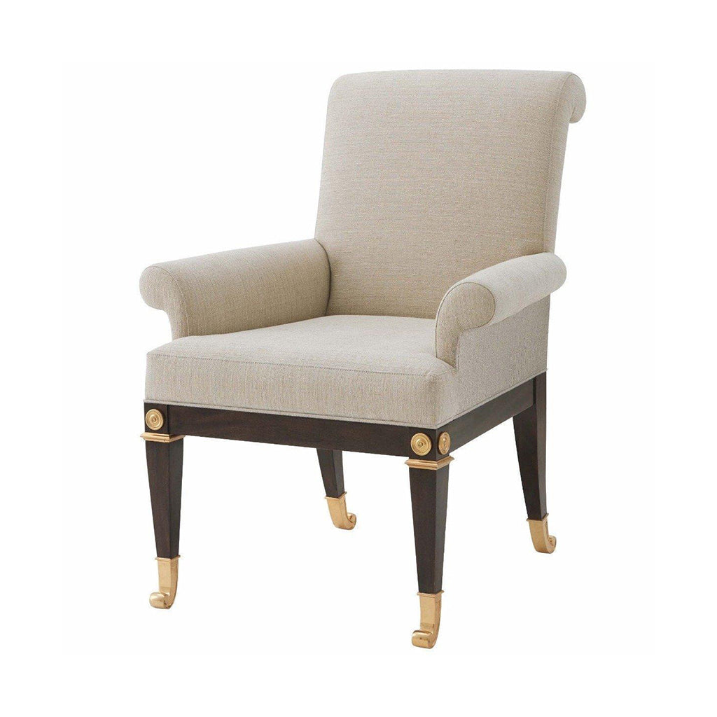 Every detail is meticulously executed with this fancy armchair, which features an over-scroll padded back and arms for ultimate relaxation. It is fully upholstered to provide a perfect place to unwind for hours. Spruce up its arrangement with molding capital legs in Cambridge finish beautified with cast Brass scroll feet.