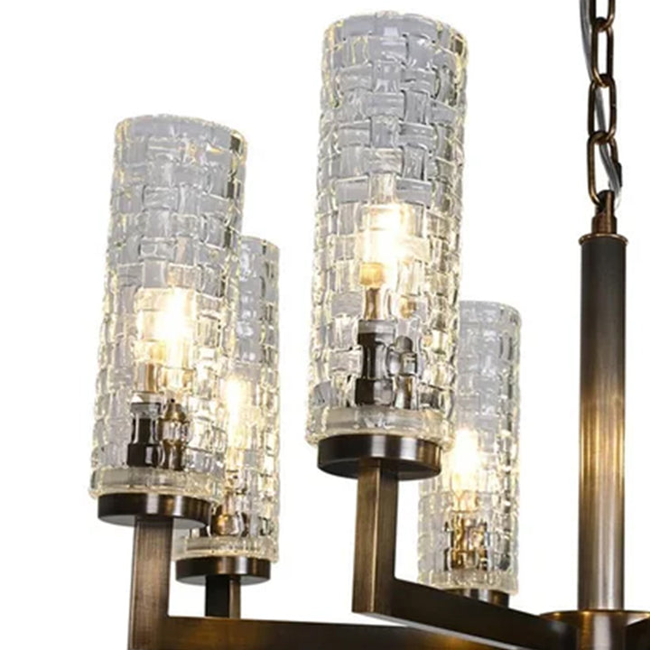 The striking design of Juno Chandelier is undeniably stunning. With woven textured glass tubes, the silhouette brings modern, unique visuals. The composition of steel and glass is paired further with the Vintage Brass color for a statement look. Suited best for the living room and dining space.