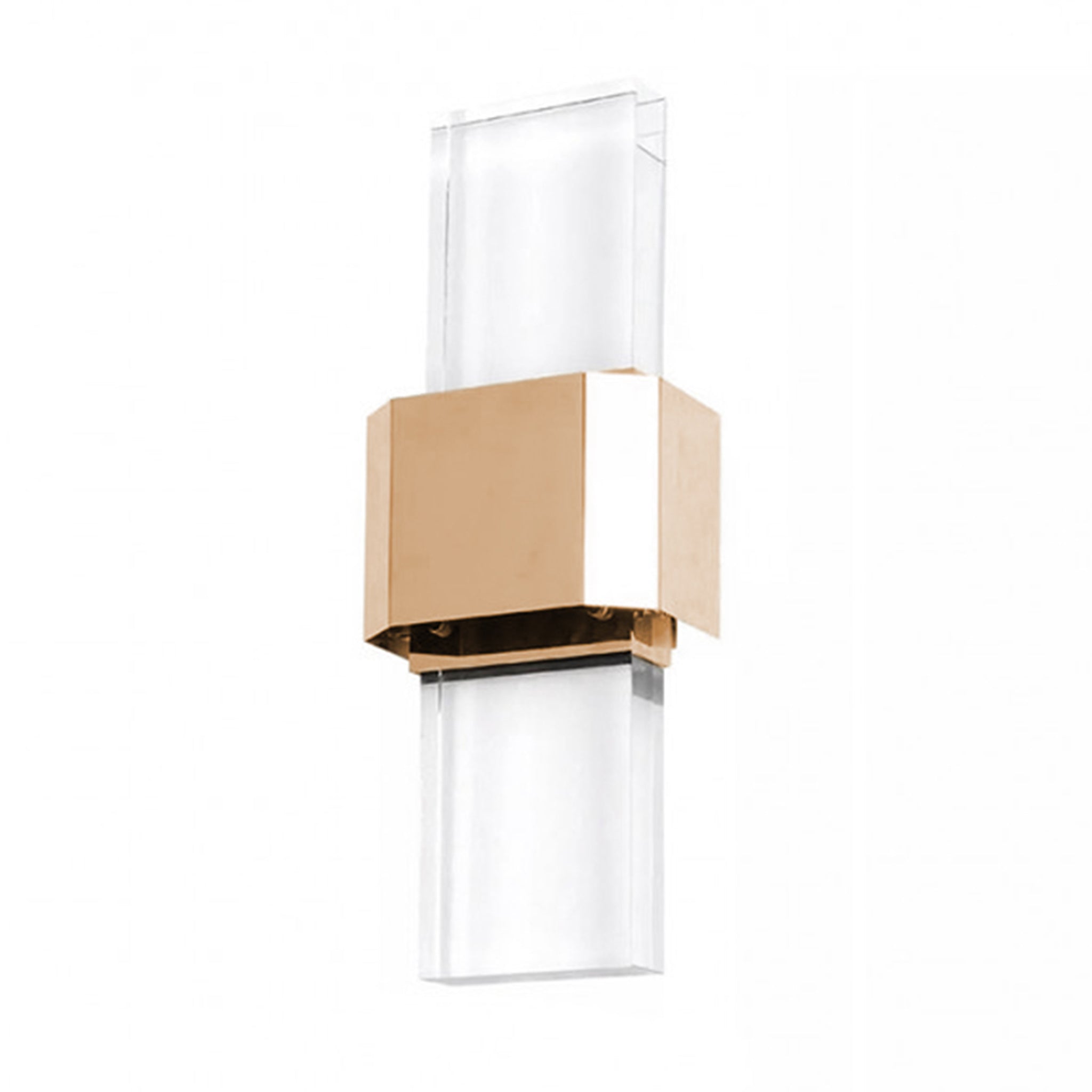 With an interesting modern design, this wall lamp will infuse gentle and homey lighting into your space. It features two crystal clear glass shades and a metal accent cladded in the middle in a Brushed Brass finish. Suitable for the bathroom, living area, or entryway for instant glam.