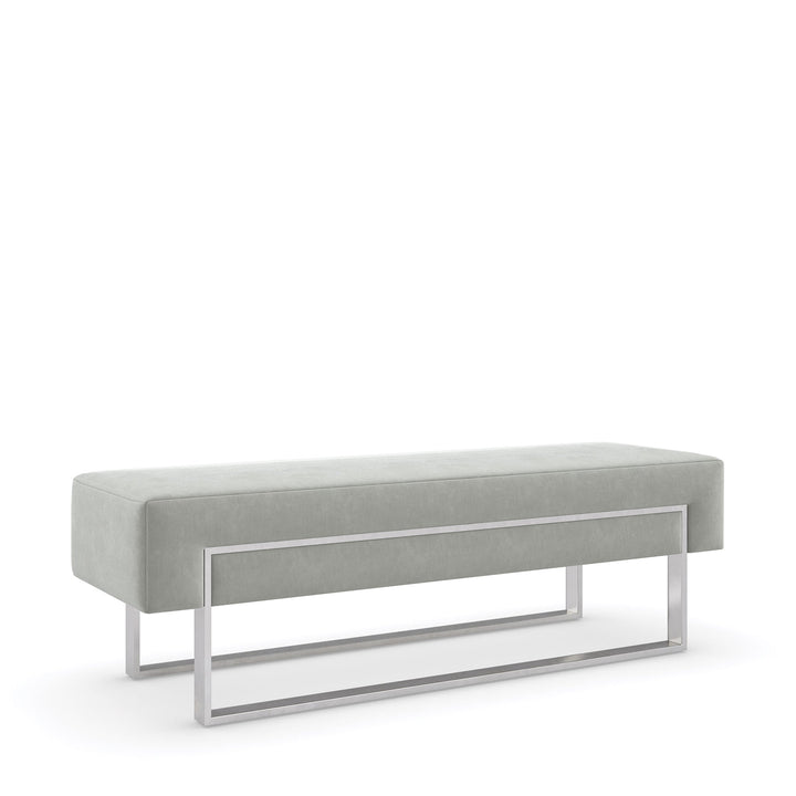 Resting on an angular metal frame in Smoked Stainless Steel Paint, this multifunctional bench brings a hotel-like vibe to your space. Dove-colored Velvet fabric upholstery evokes monotone elegance. Add this streamlined piece to the end of the bed or hallway and create a relaxing and calm ambiance to your decor.