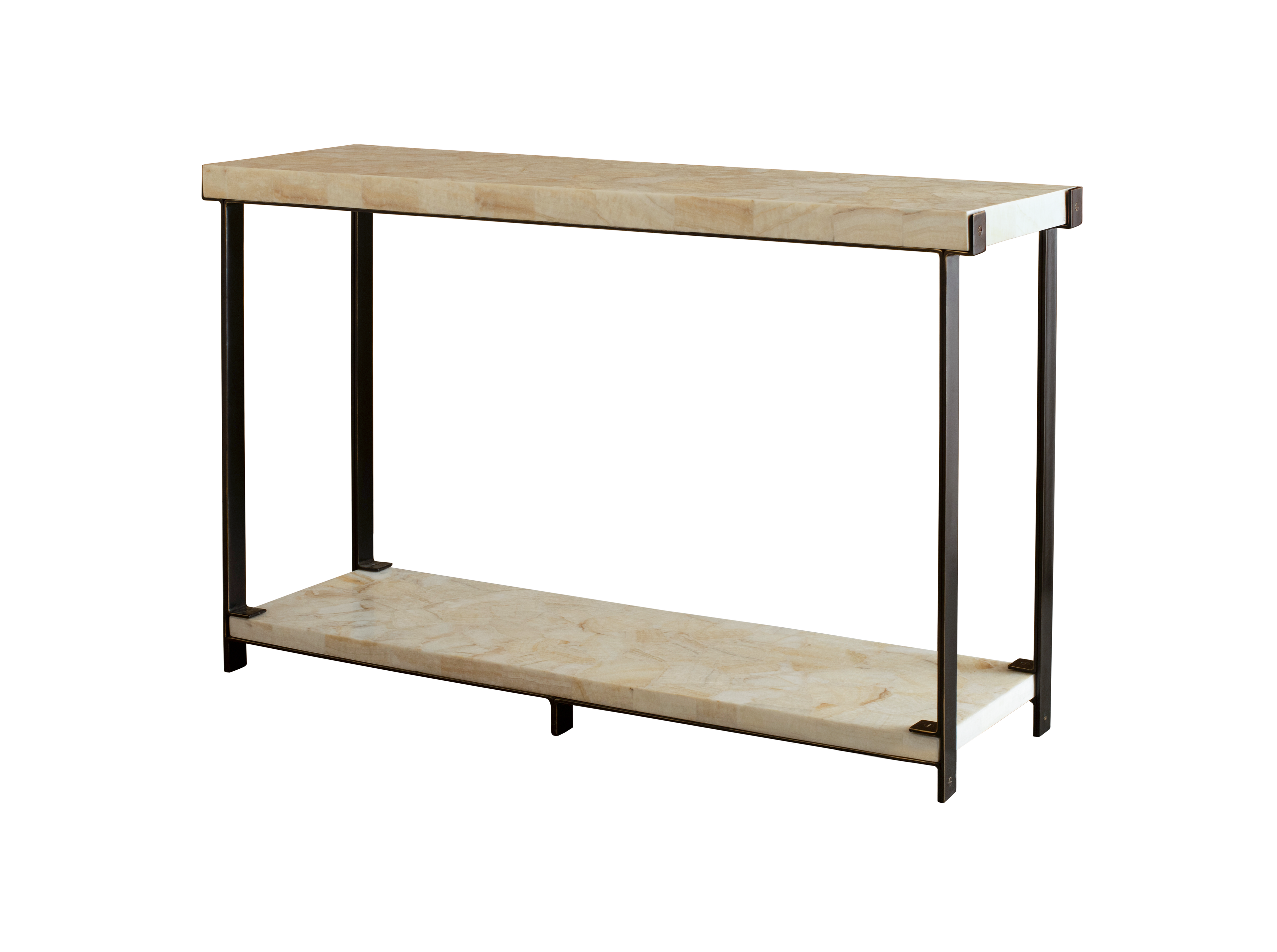 Defined by the natural beauty of crystal stone from the Philippines, this console features an oil-rubbed bronze frame with elegant balance. The stone’s natural veining lends each piece a unique character, embodying timeless luxury.