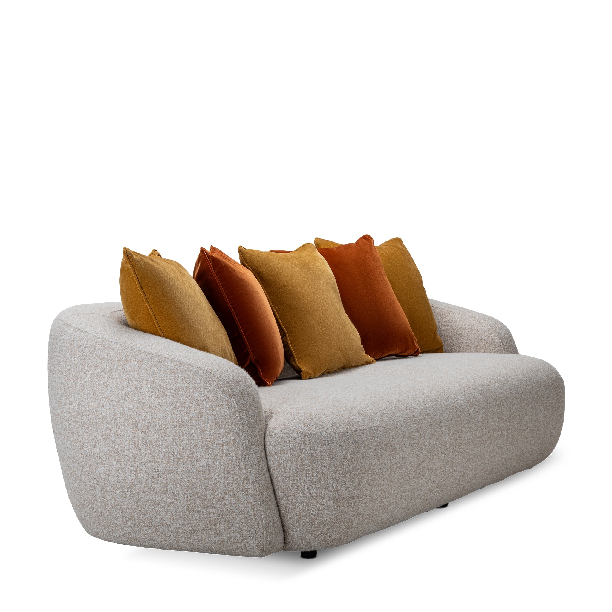 Upholstered in erica oatmeal fabric,comes with two burnt honey pillows and three gideon fennelseed pillows. It features a full seat cushion for comfortable seating and brings both style and comfort to your living space.