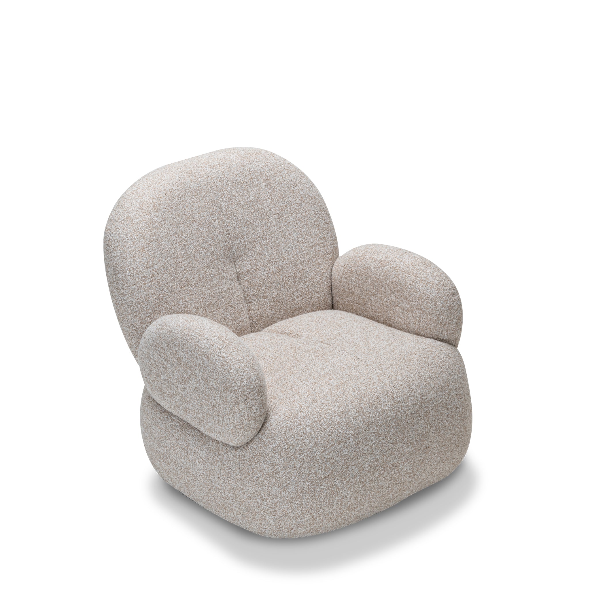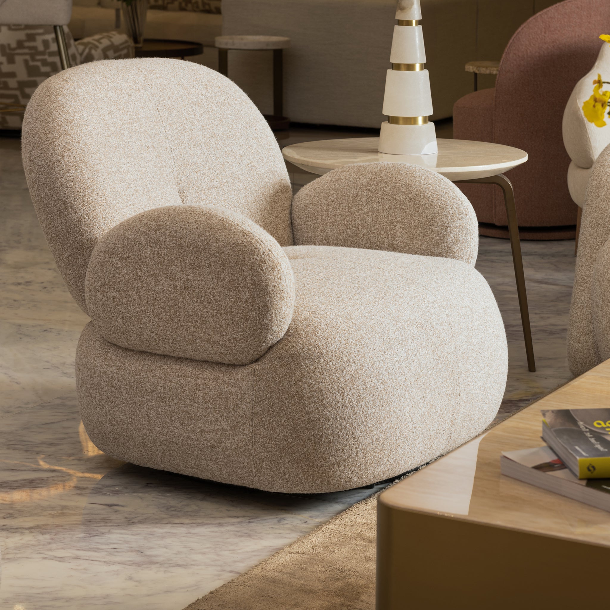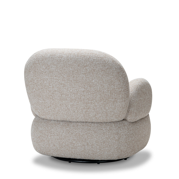 Upholstered in erica oatmeal fabric, this chair features a smooth swivel base that offers flexibility. It strikes the perfect balance between form and function, making it a versatile addition to any space.