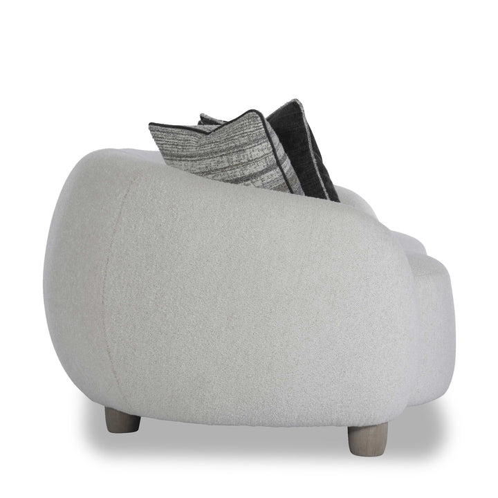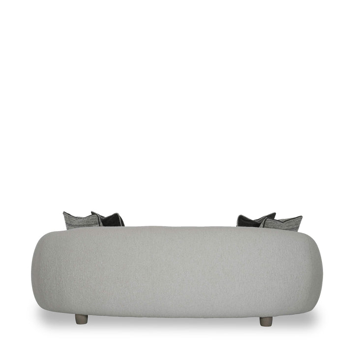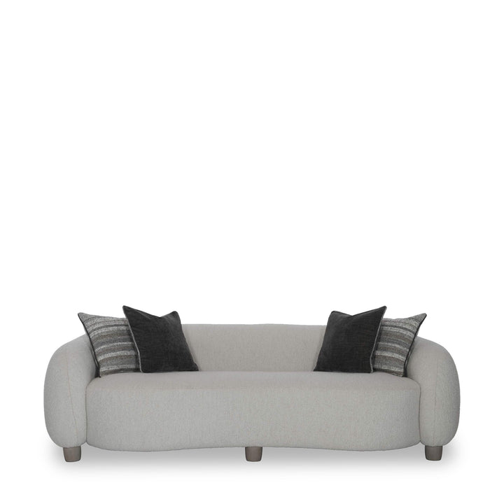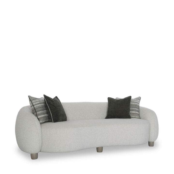Make this chic sofa a centerpiece of your modern living room and create a clean and comfy setting. The exposed feet are clad in a Flaxen finish that goes well with the muted color scheme. Its plush round arms and tight seat dressed in luxurious upholstery let you relax in style.