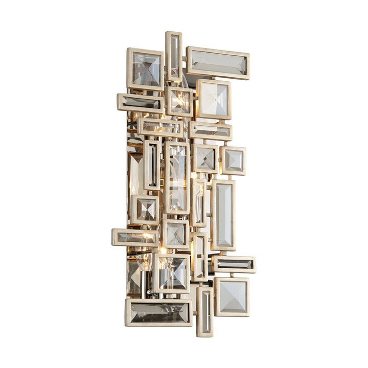 Method Wall Sconce creates a gorgeous focal point in any space. Embedded with several geometric shapes in a mosaic pattern, this luxurious piece exudes unmatchable grace. The sconce flaunts a handcrafted iron frame fitted with clear and smoke crystals.