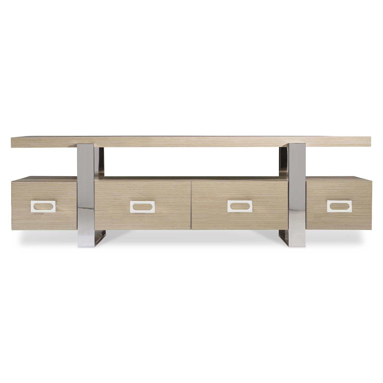 Wood and metal are perfectly combined to create an elevated look on this entertainment credenza.