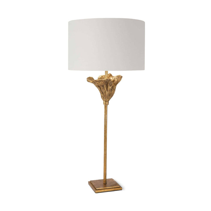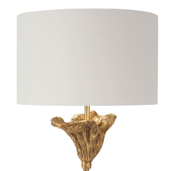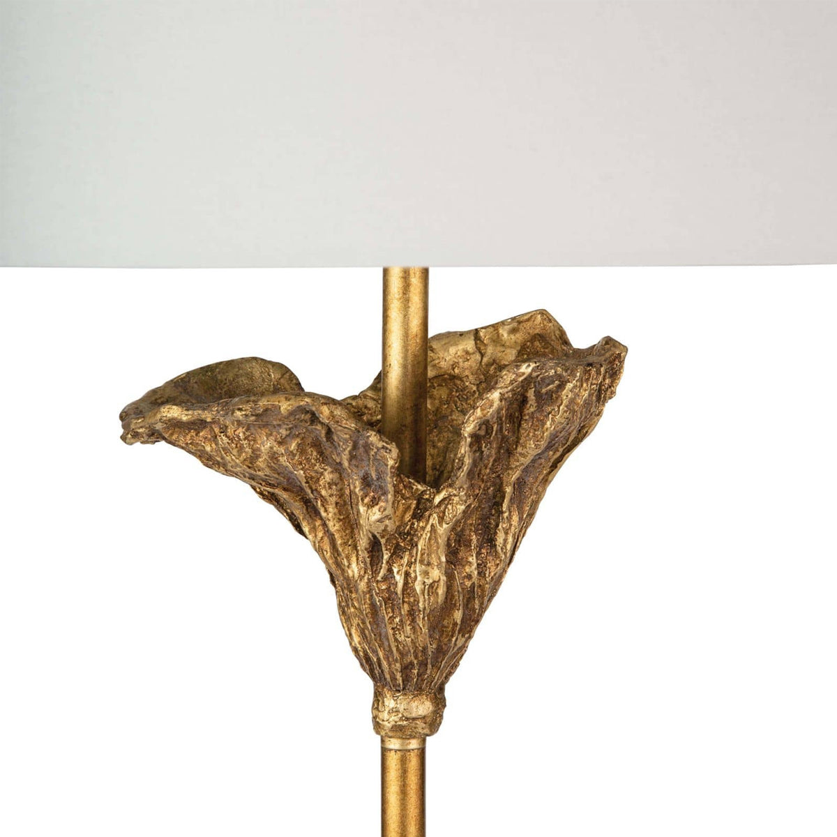 Surprise your guests with your sense of aesthetics with the antique-styled Monet Table Lamp. The idea of a gold blooming flower is taken from an Impressionist painting that sets a statement on its own. The Antique Gold finished neck supports a Natural Linen shade top. It infuses the room with a sense of serenity and tranquility.