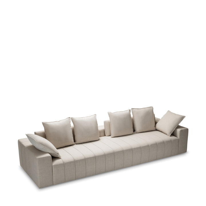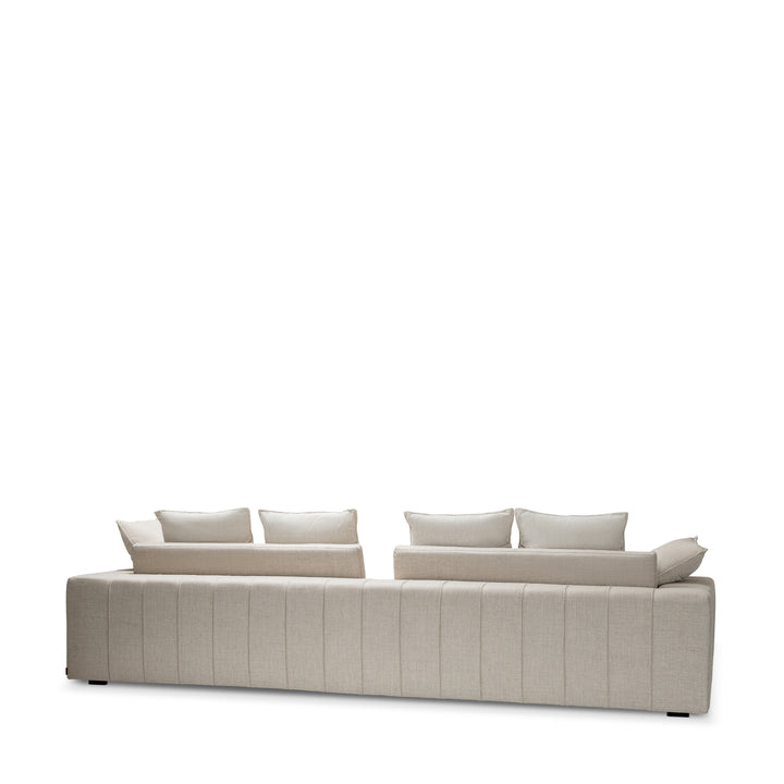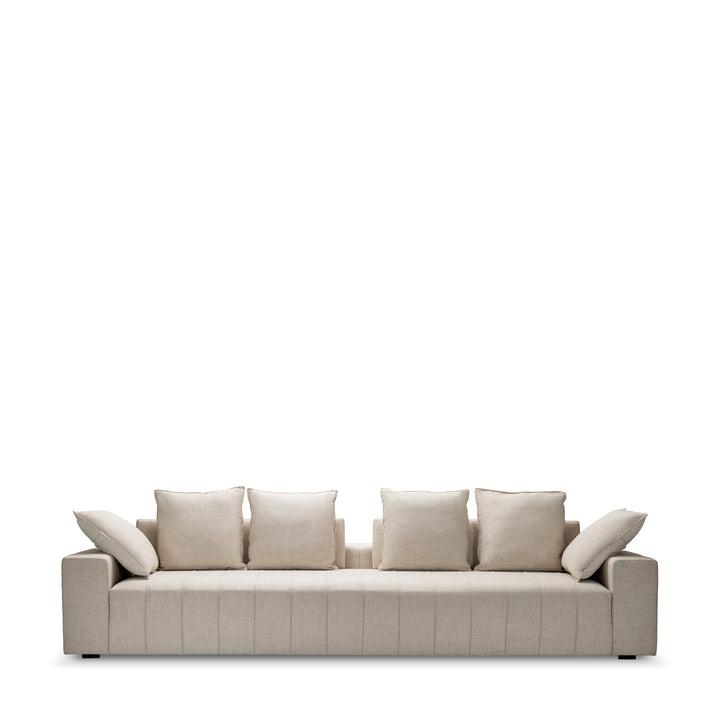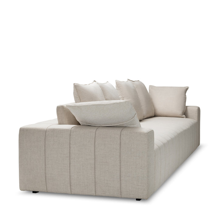 Upholstered in baltic natural fabric, this sofa brings a timeless look that blends effortlessly into any space. The front cushions in snug milk fabric are designed to provide extra comfort, making it a piece that feels both elegant and inviting.