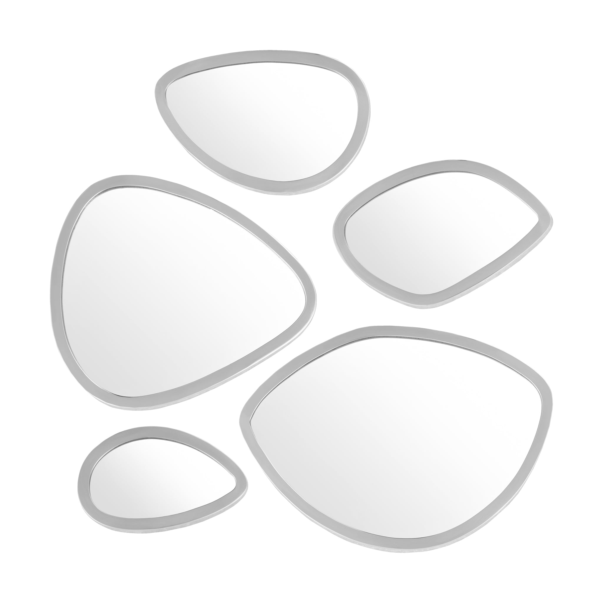 A mosaic of mirrors in various sizes and shapes will undoubtedly draw attention to your living room. It comprises five clear mirrors that parade subtle curves and are encased in a Stainless Steel frame with a Polished Nickel finish. Style this set to your liking and allow its clean and smooth surface to reflect your scenic interior.