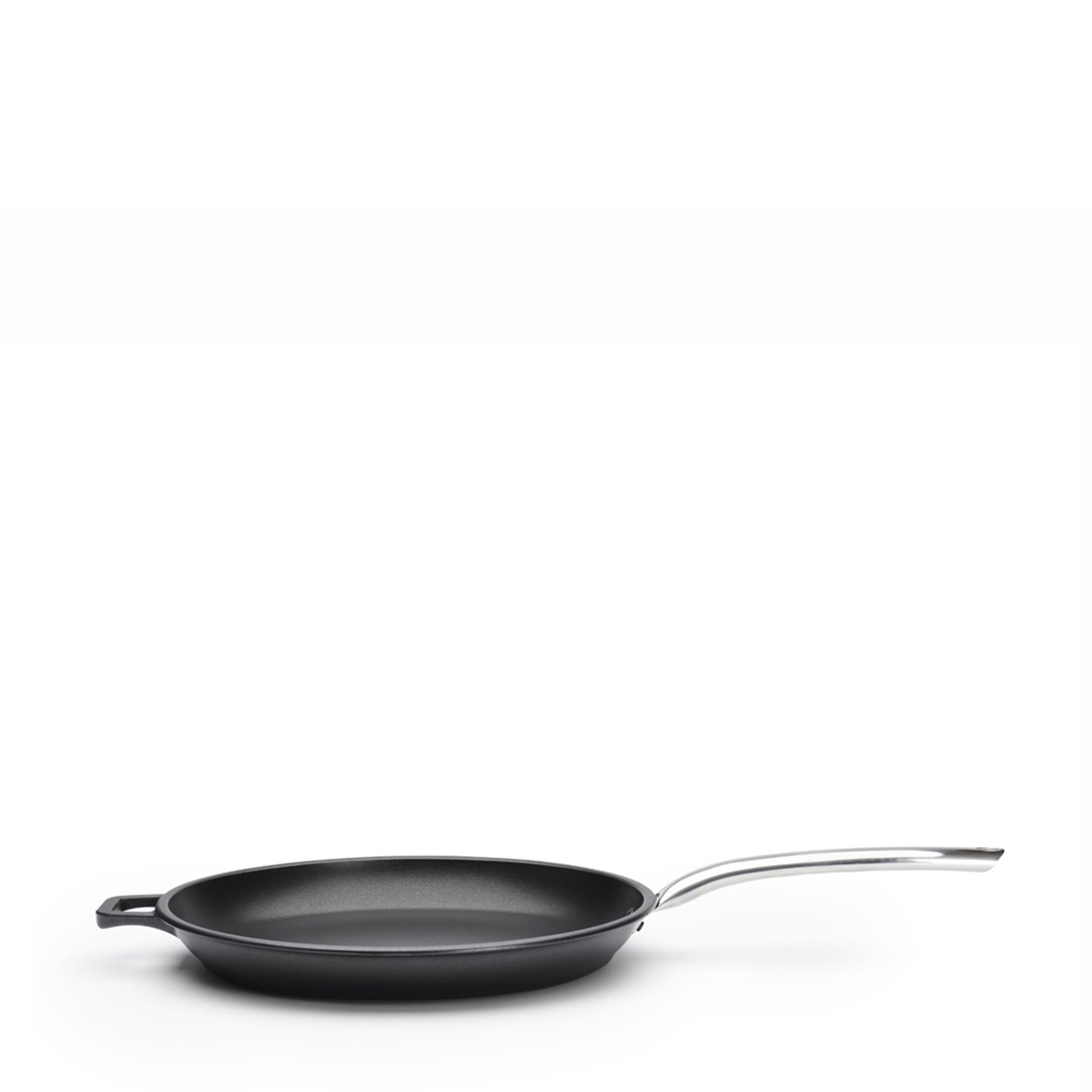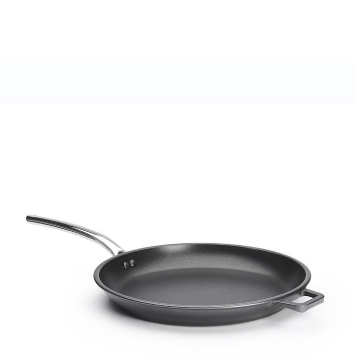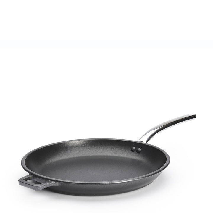 Say goodbye to sticky messes and hello to culinary ease with Choc Extreme Non-Stick Frypan. A flat round shape and non-stick steel material make flipping and frying a breeze. Equipped with not just one, but two handles—a sturdy stainless steel riveted handle and an extra metal handle—for ultimate control and maneuverability.