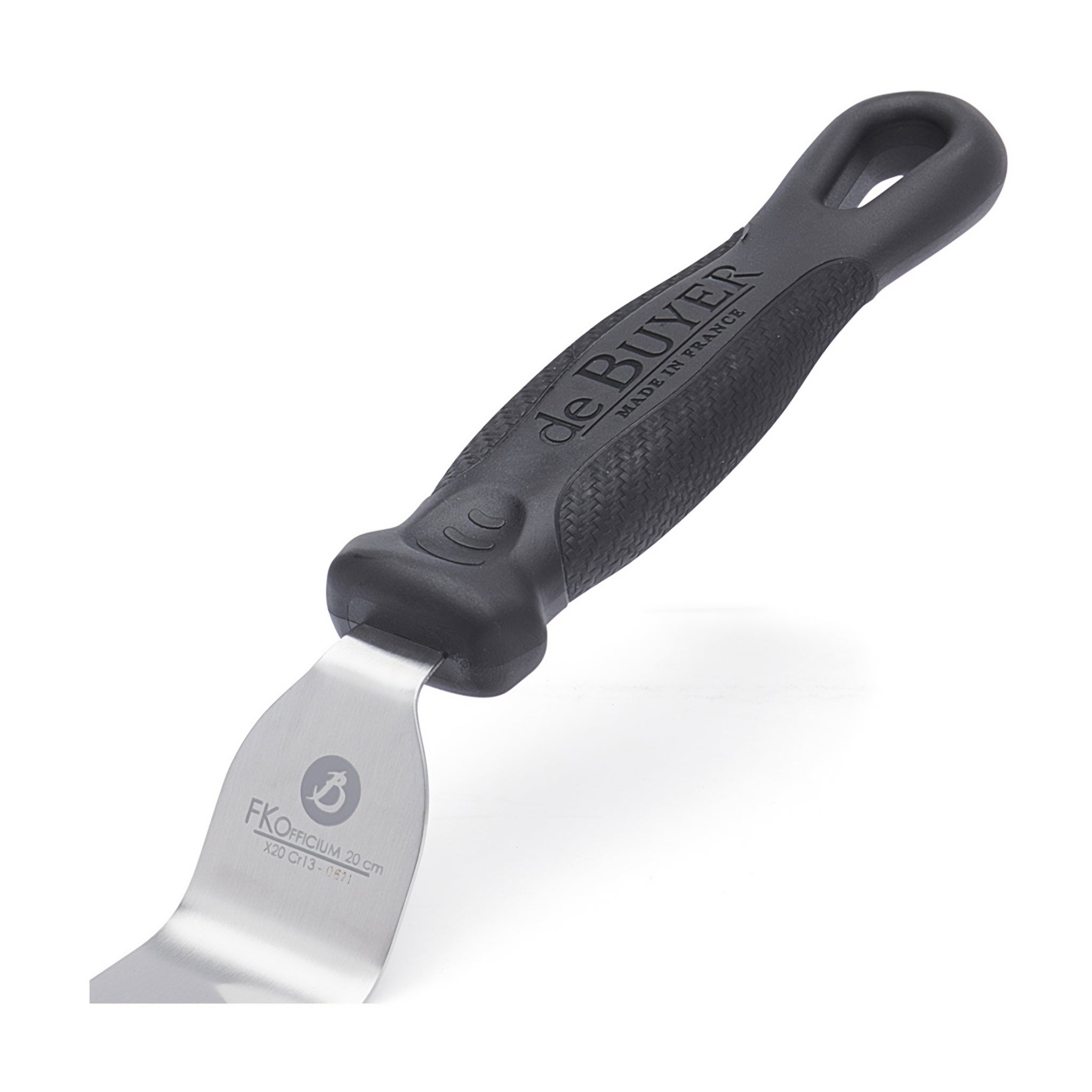 Uncover the epitome of form and function in our Offset Spatula. With its flat design and rounded edges, it effortlessly spreads and levels pasty substances with unparalleled precision. The angled handle fashioned in a Black accent enables comfortable maneuvering, ensuring smooth application every time. Crafted from premium Stainless Steel, its sturdy and resilient blade ensures long-lasting durability.