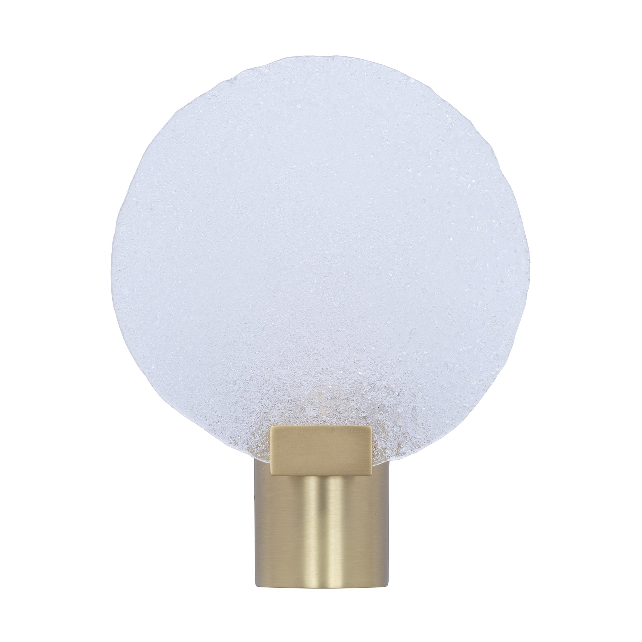 A fascinating wall lamp to elevate the visuals of your modern home decor! A cylindrical Stainless Steel structure with a Brass finish holds a clear circular Frosted Glass shade for delightful illumination. Anyone who sees this piece will be amazed by its modest yet tasteful aesthetic. It looks perfect in any interior setting.