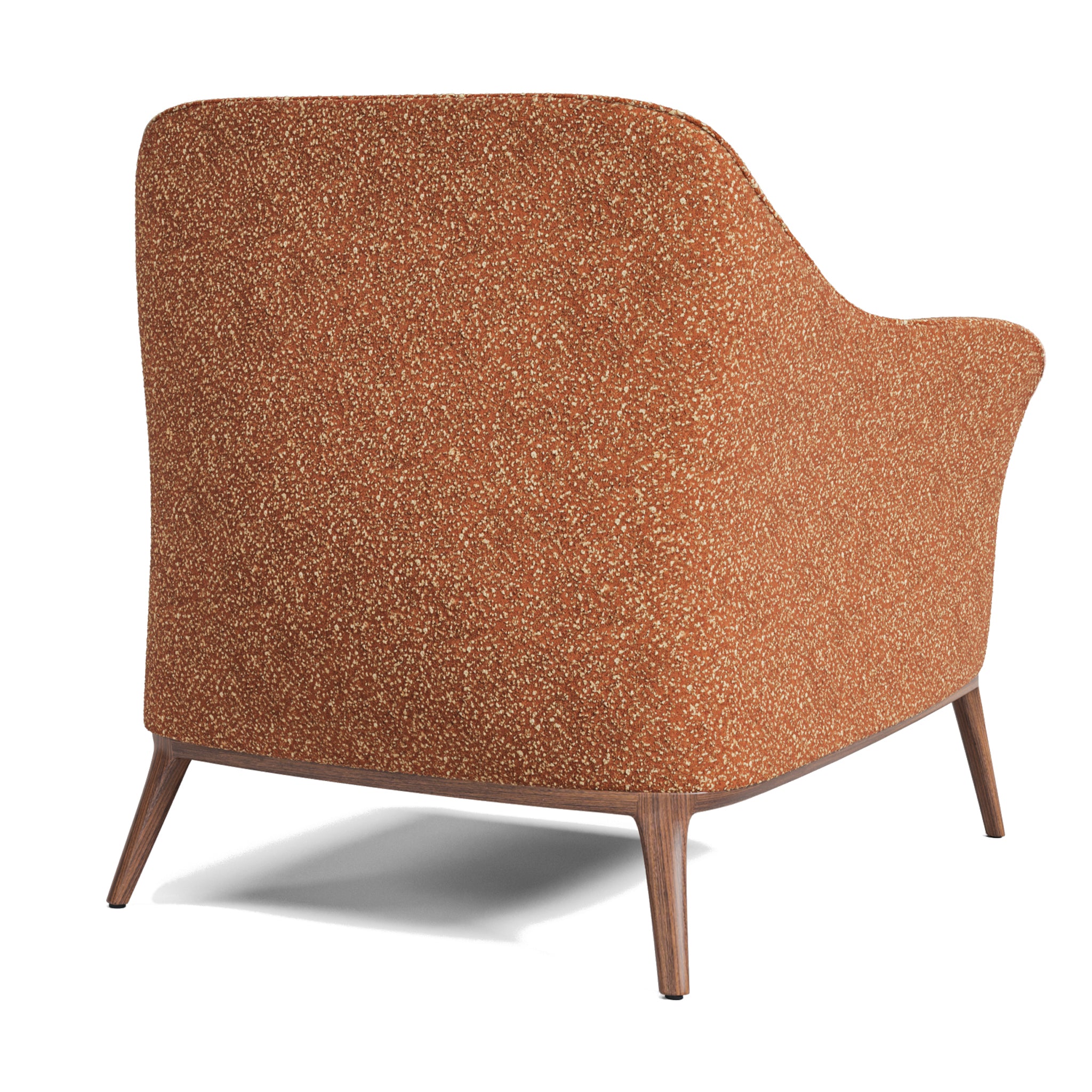 Upholstered in giorgia raisin boucle, this chair showcases beautiful curves and precise piping that reflect refined craftsmanship. Solid wood legs in a midtone walnut finish reveal the beauty of the natural grain. Designed to complement the zurich collection.