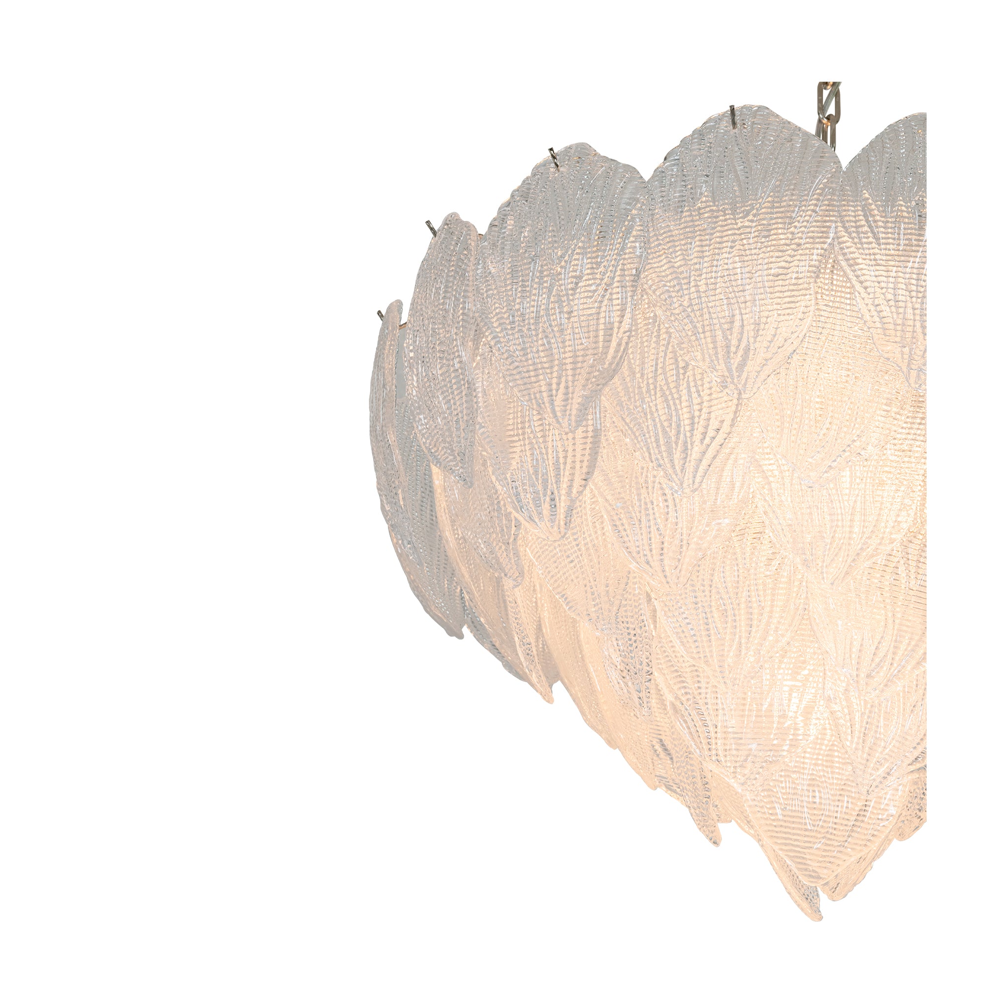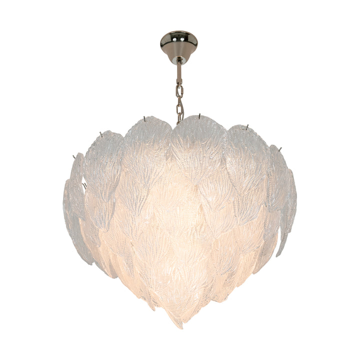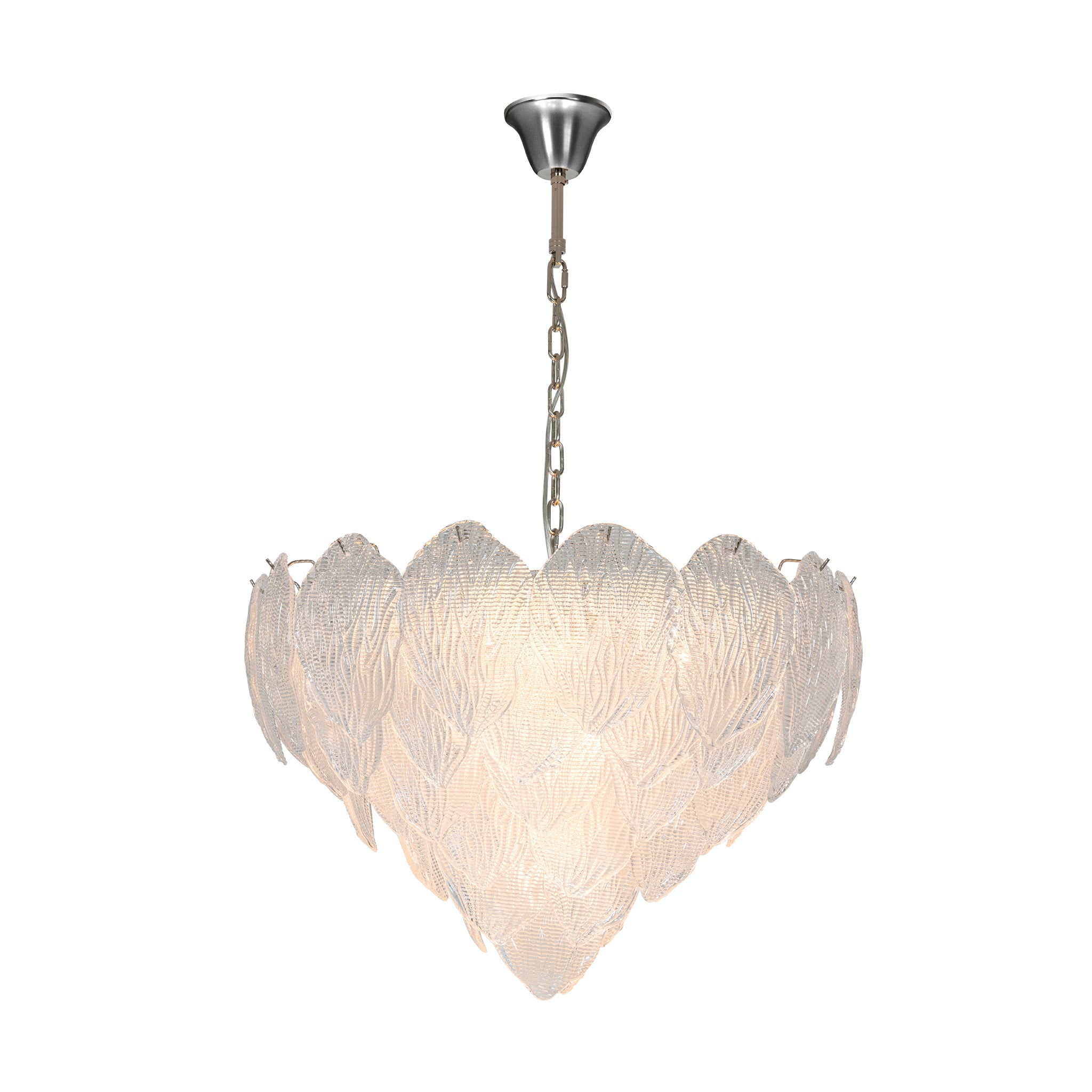 Bring a touch of glamour and natural allure into your home with the Althea Medio Antique Brass Chandelier. It features a slender Stainless Steel frame in a Nickel finish adorned by clear glass leaf shades for a striking appearance. This piece will convey the relaxing appeal of Mulberry leaves to your home.