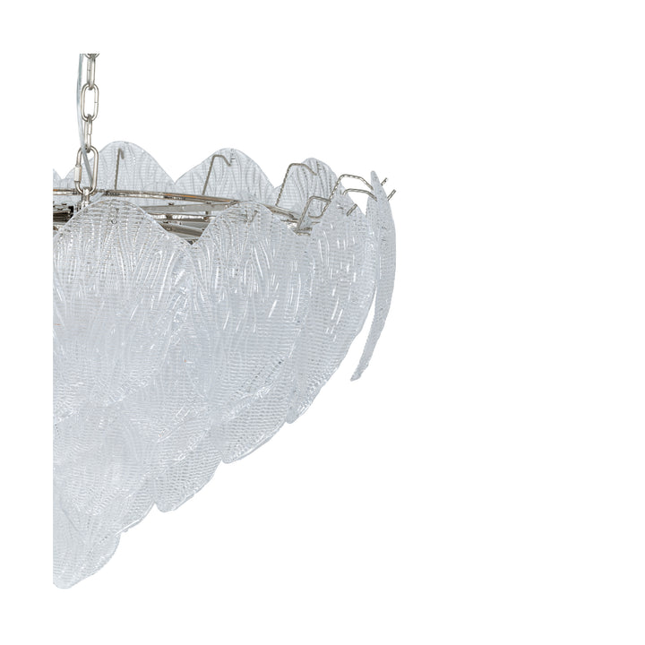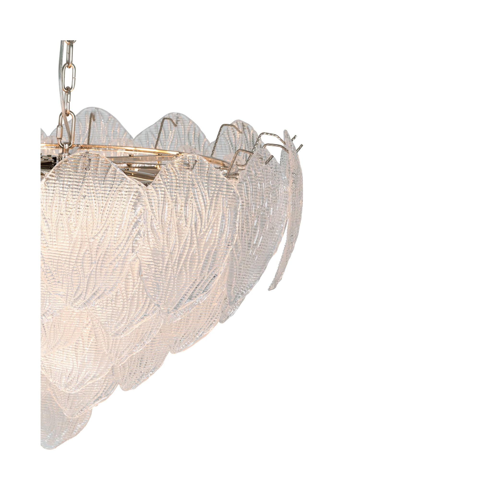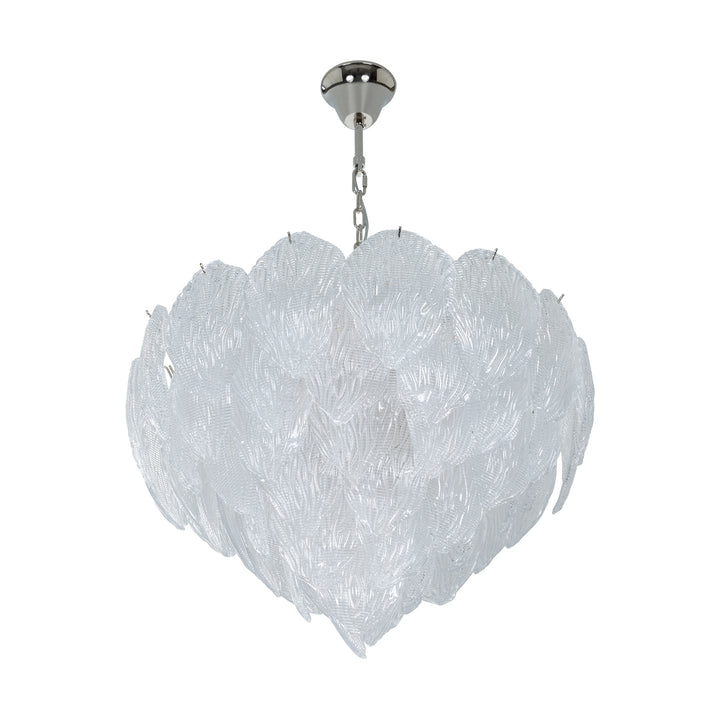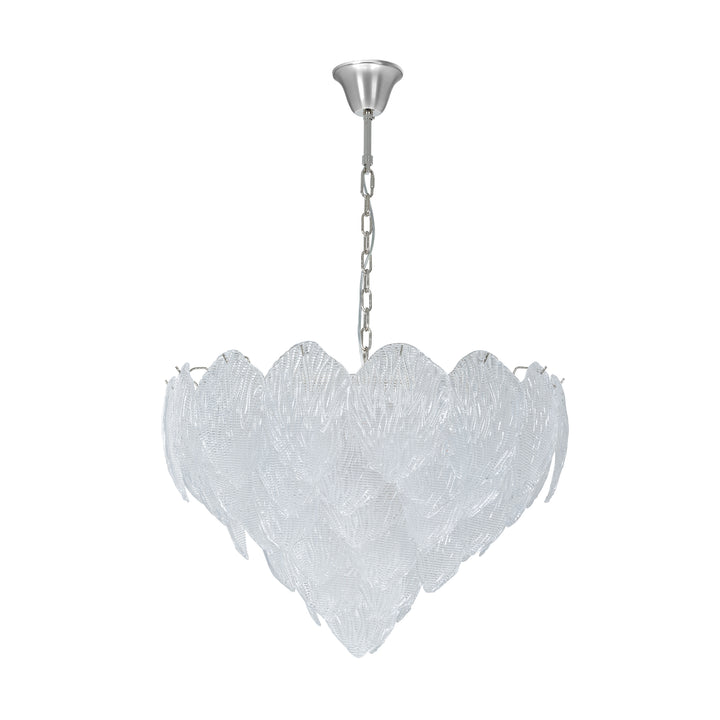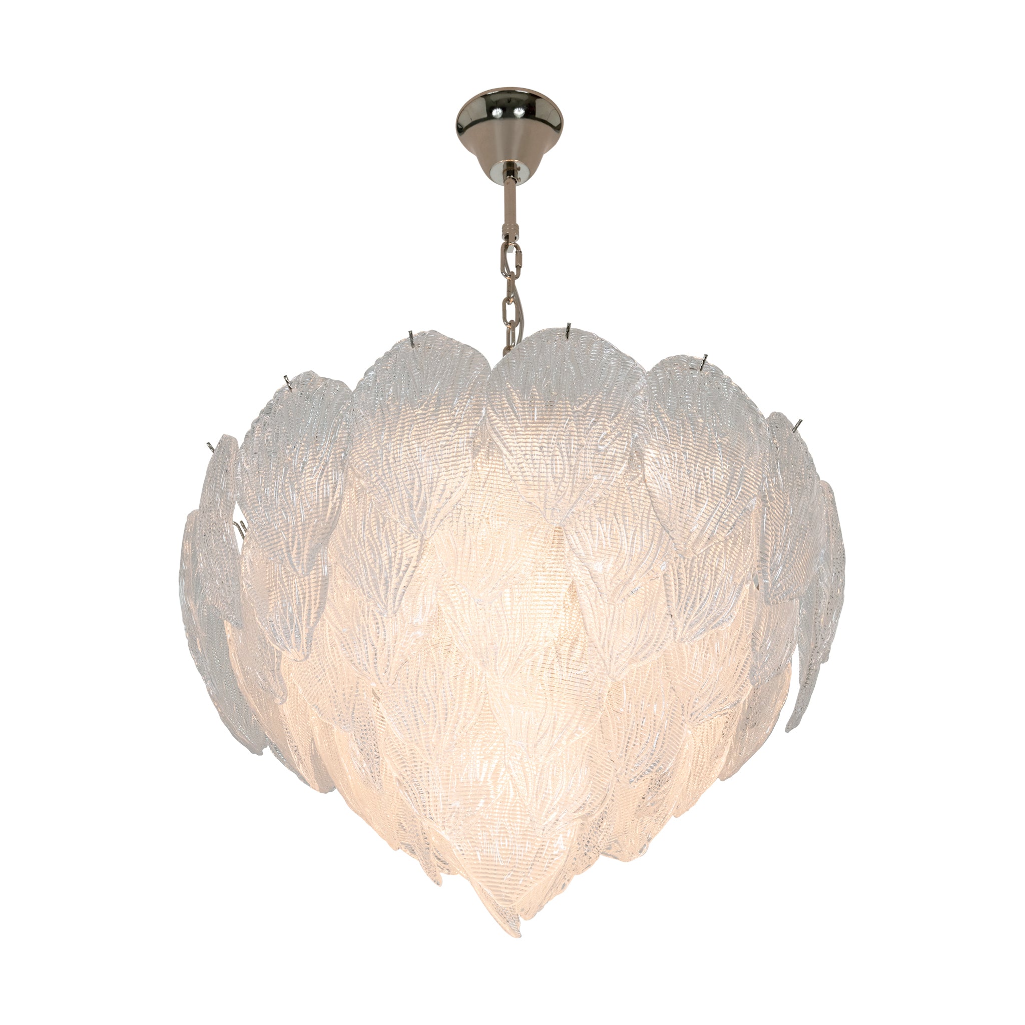 Bring a touch of glamour and natural allure into your home with the Althea Medio Antique Brass Chandelier. It features a slender Stainless Steel frame in a Nickel finish adorned by clear glass leaf shades for a striking appearance. This piece will convey the relaxing appeal of Mulberry leaves to your home.