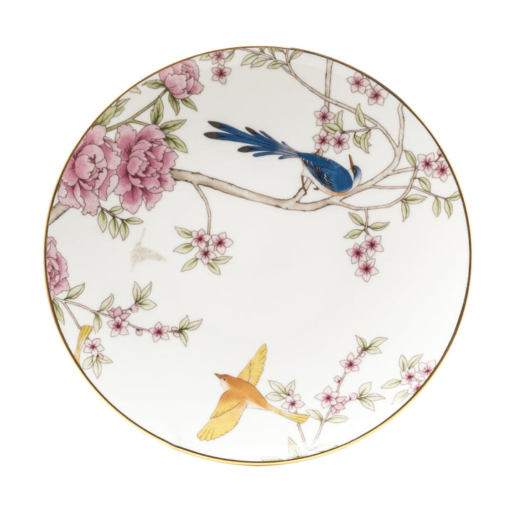 Adorned with a delicate bird and floral pattern, this plate is a true testament to the artistry of design. The intricate details create a mesmerizing tableau that captures the essence of a flourishing garden, while the multicolored accents infuse a burst of life into the elegant White backdrop. Bring the allure of the garden into your dining space and let the symphony of nature's beauty delight your senses with every meal.