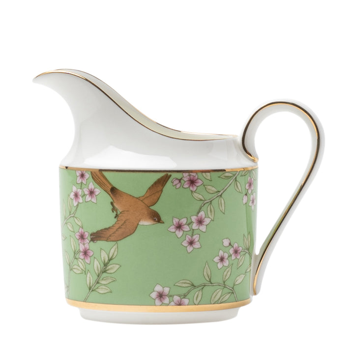 Awaken your senses with a morning serenade courtesy of the Queen's Garden Green Creamer 170cc. Its bird and floral pattern evoke the song of nature, while the Green and White accents add a refreshing touch to your breakfast routine. This piece combines the functionality and flair that every woman desire.