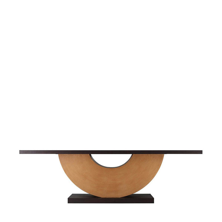 Sandwiched between two rectangular slats, the semi-circular piece in the Aulos Gilt finish looks inviting and creates indulgence in the room. The Oak Veneer in Evening finish offers a beautiful contrast, enhancing the overall visual appeal. Add this to your dining area and delve into a luxurious world of your own.