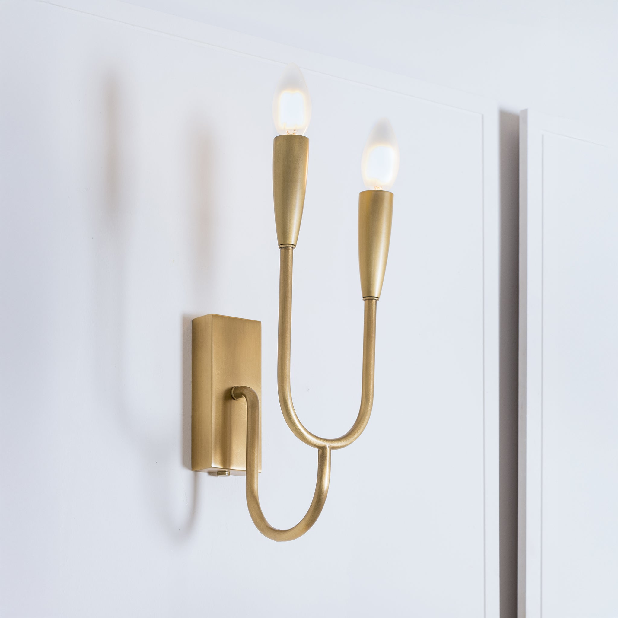 A seamless companion to the oscar collection, this wall lamp combines a curved form with a clean, structured silhouette. Crafted from steel with an antique brass finish, offering both durability and timeless appeal.