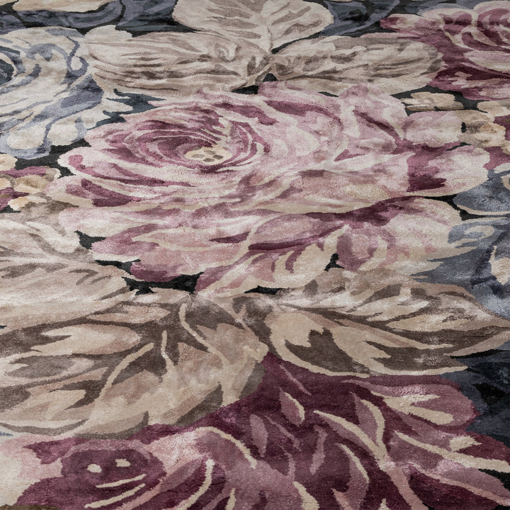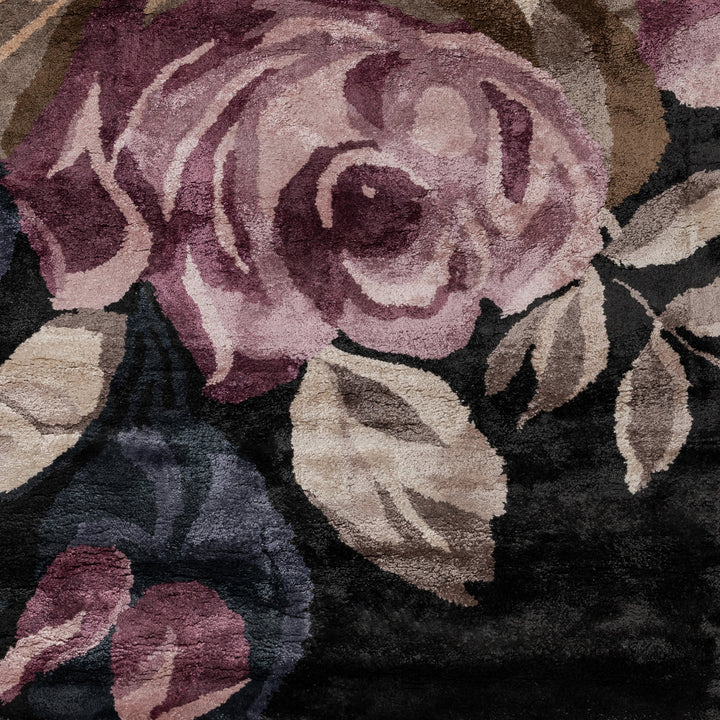 Turn your home furnishings to the next level of luxury with the Romance Mystic Carpet. It showcases a floral pattern with pink and purple tones on a Black background, creating a mind-blowing optical illusion. Its hand-tufted Viscose and Cotton thread parades a broader, rectangular-shaped form that lends a silky and delicate texture. This piece works well with a minimalist interior to make your room stand out.