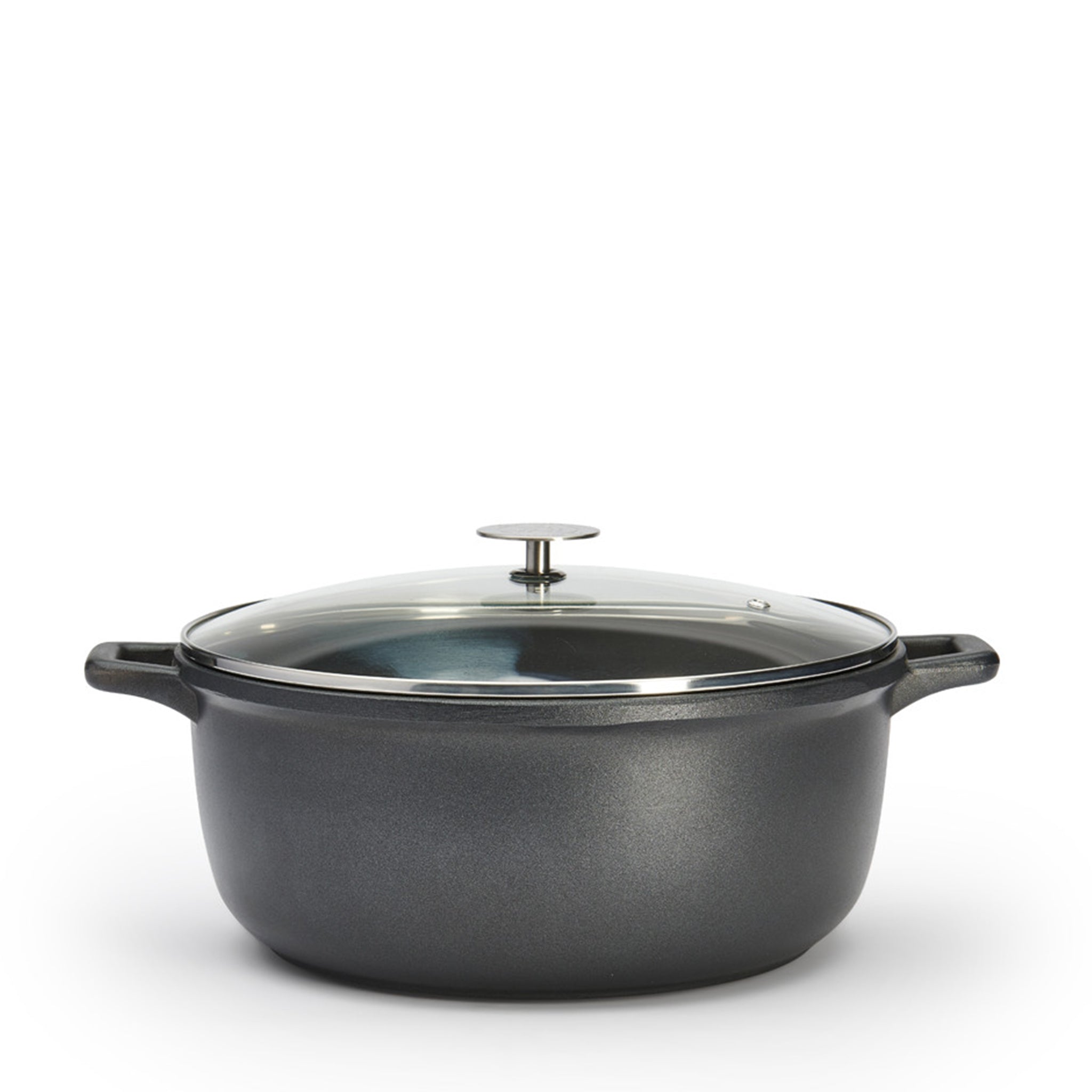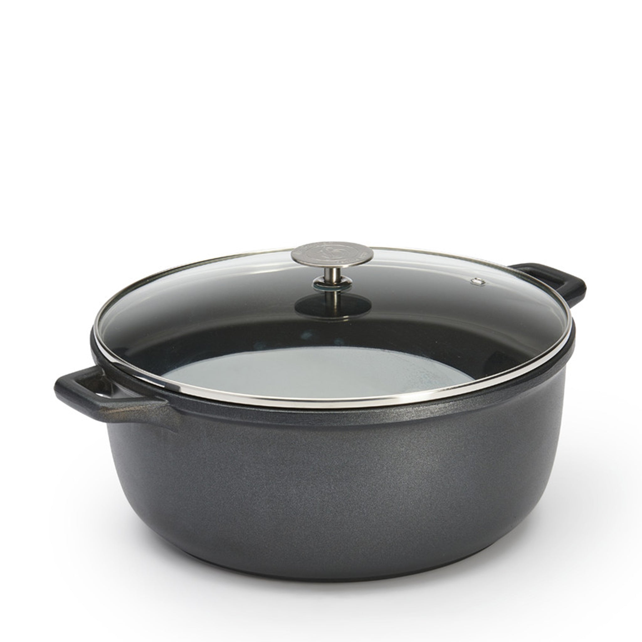 Step up your culinary prowess with this chic stewpan! Its broader and high-edge composition facilitates condensation, perfect for tender, flavorful creations. Two unbreakable handles ensure easy serving, while a sophisticated glass lid with a metal holder adds a touch of elegance. Elevate your cooking experience with this versatile and stylish stewpan, making every meal a delightful masterpiece!
