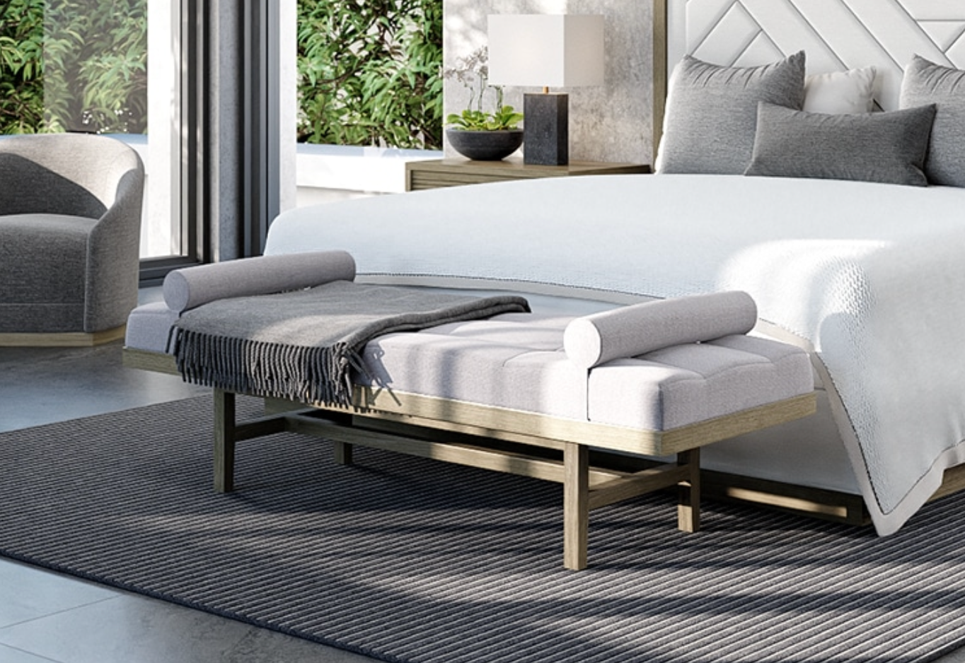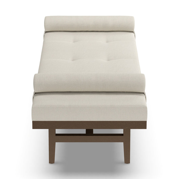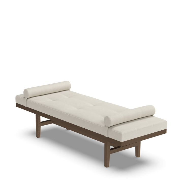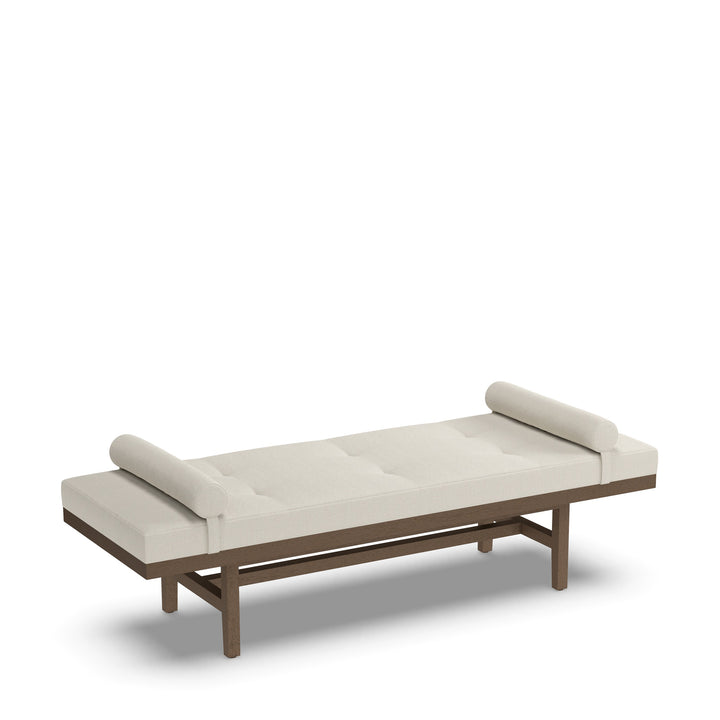 Presenting the Rumba Daybed 100: the epitome of comfort and chic sophistication. Its rectangular upholstered seat beckons relaxation, while delicate biscuit tufting lends an air of elegance. Supported by a sturdy wooden base and legs, this daybed seamlessly combines durability with style. Finished in a timeless Taupe hue, it effortlessly complements any modern decor.