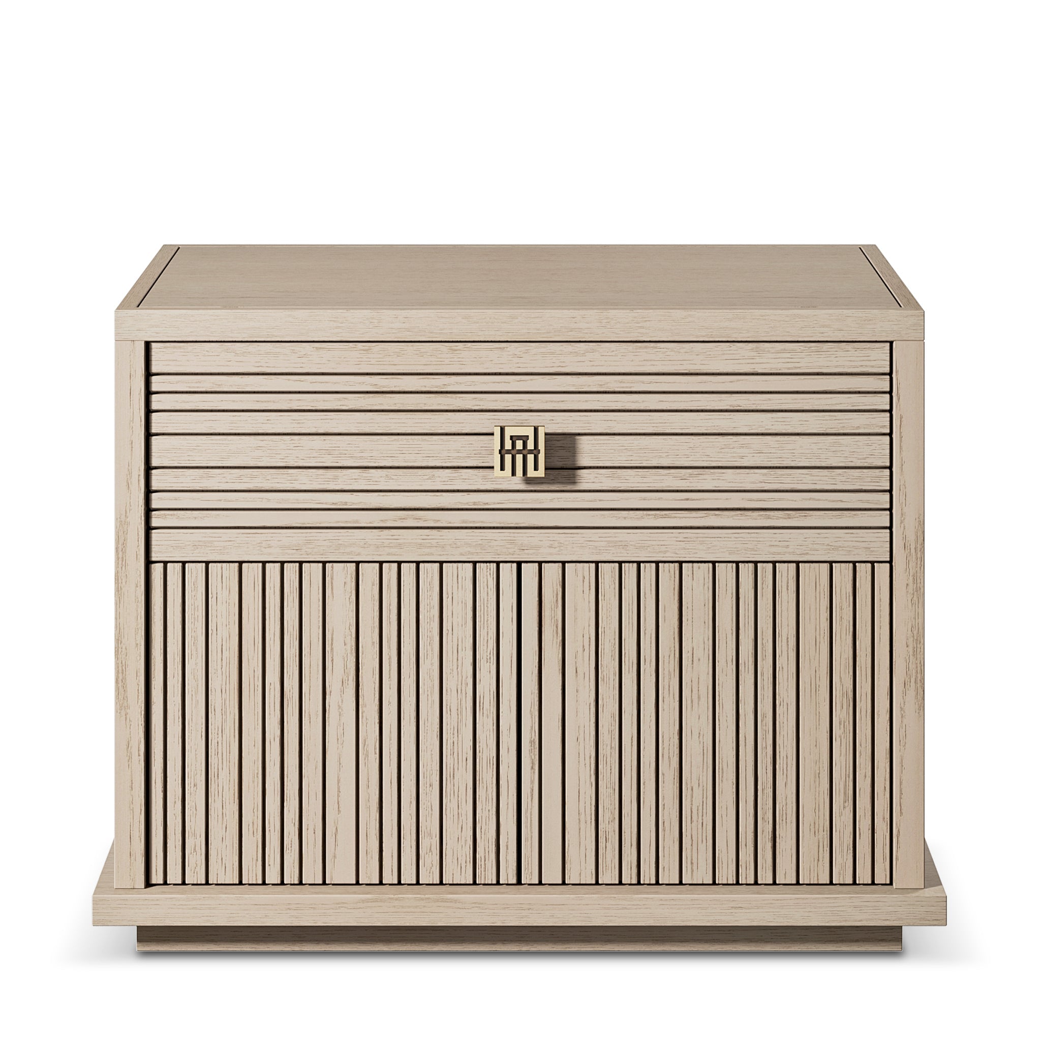 Offering great proportions, the Rumba Nightstand features delicate routing details at the front, giving the piece depth and texture. Decorative hardware pulls add to the aesthetics of this classic wooden beauty. The modern contemporary nightstand has an eclectic design that different bedroom styles can adapt.
