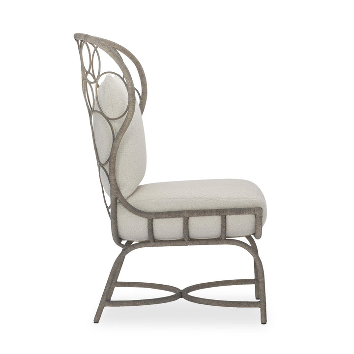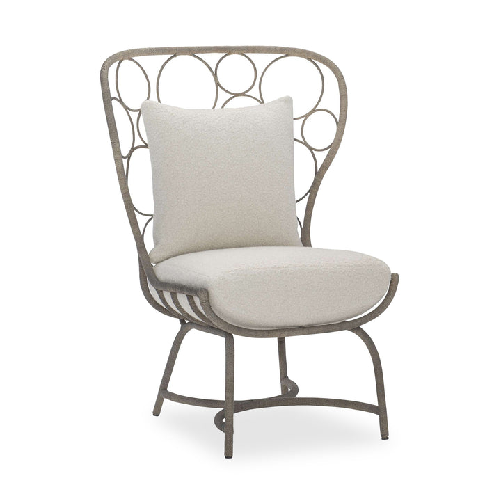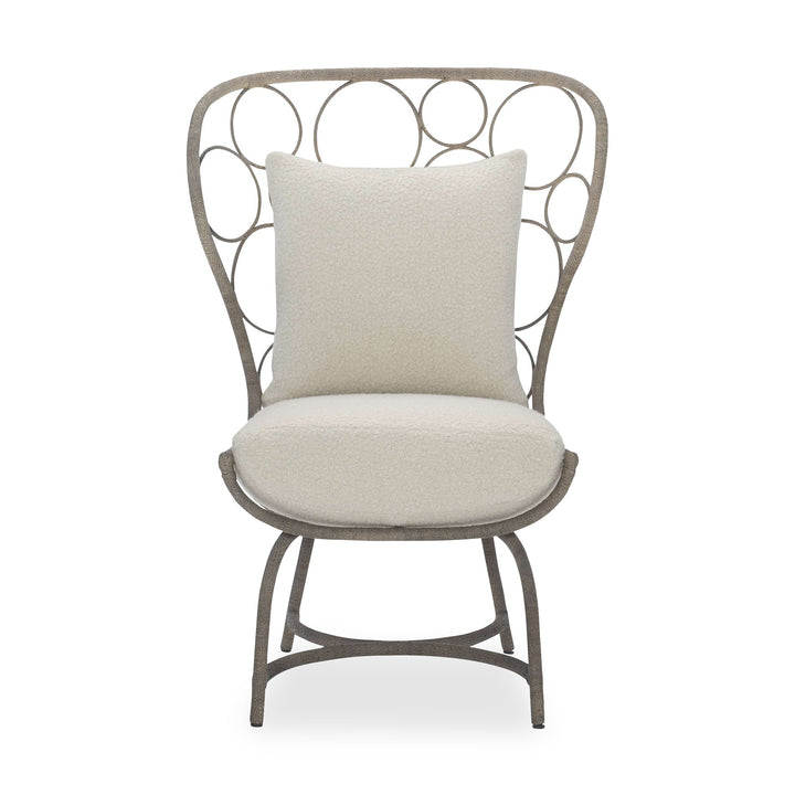 A statement piece that reflects rich taste and blends with sophisticated decor. Composed of a wrapped metal frame and flaunting a curvaceous silhouette, the chair can anchor any space thanks to its graceful appeal. It has a seat and a back cushion to ensure the utmost comfort while you lounge.