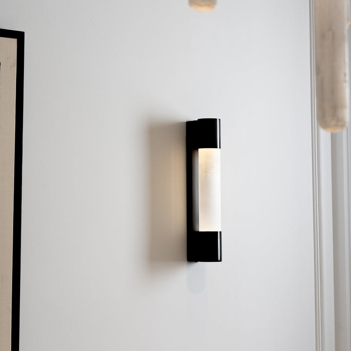 Defined by simplicity and material elegance, this wall lamp highlights the subtle texture of selenite within a modern design. The softly illuminated stone adds warmth and depth to the space.