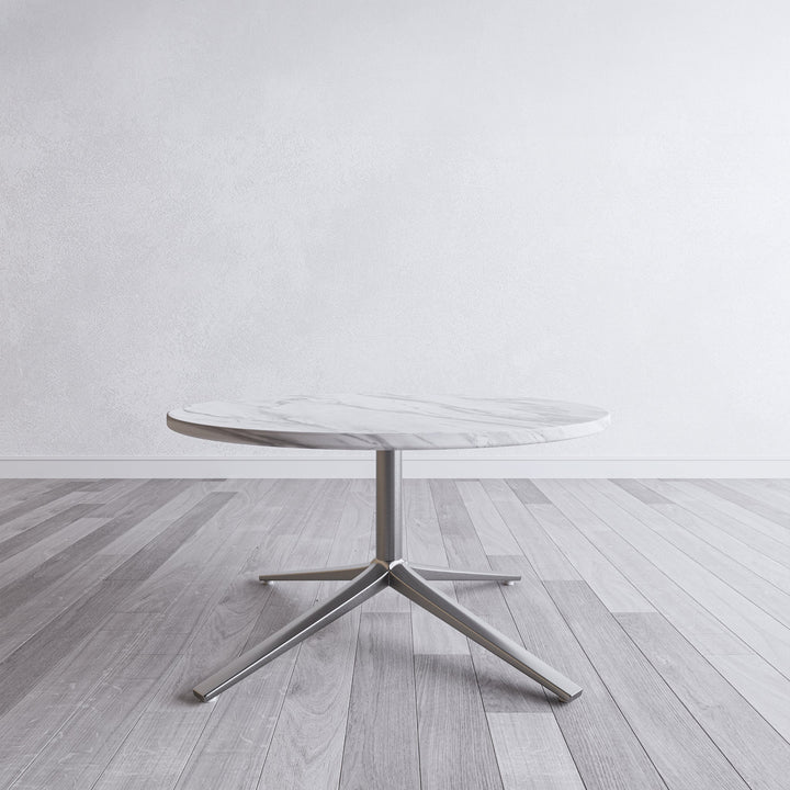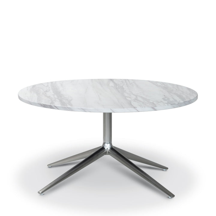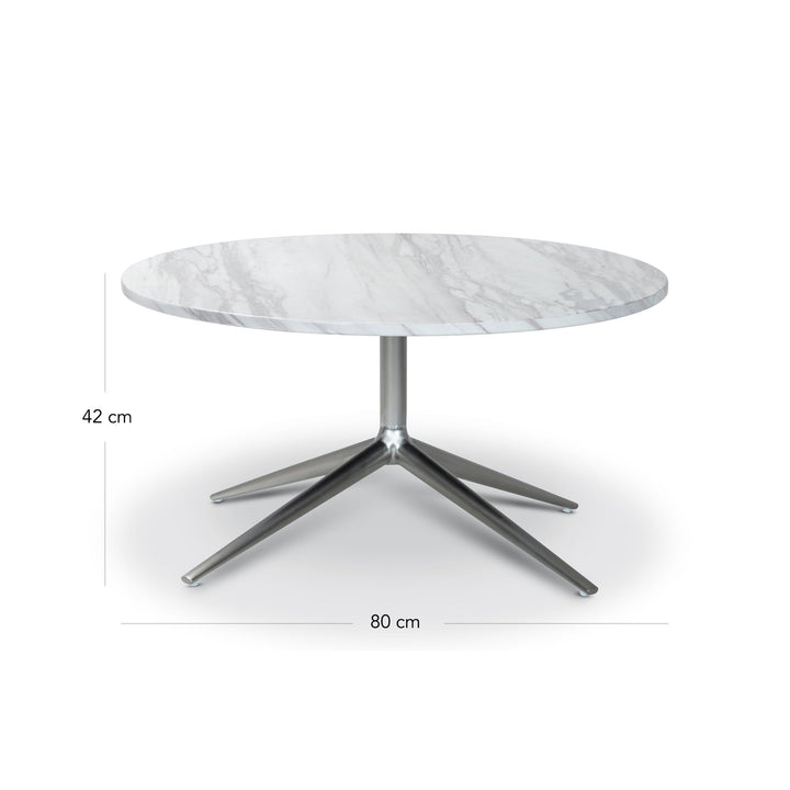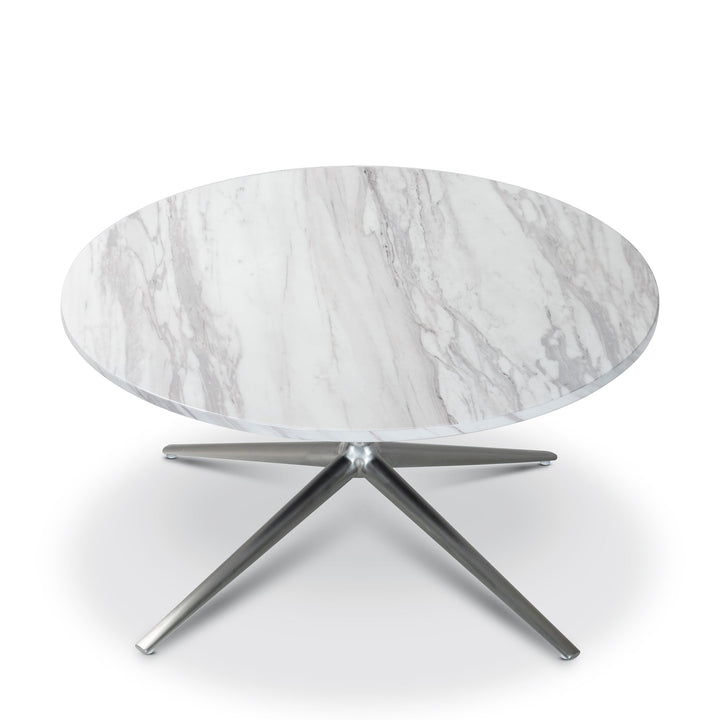This classic coffee table is created by an exceptional blend of metal and marble. Standing firmly on an X-shaped Stainless Steel base with an electroplating technique for a Brushed Nickel look, it is crowned with a White rounded Marble top. The Seina II Coffee Table defines modernity and minimalism at par.