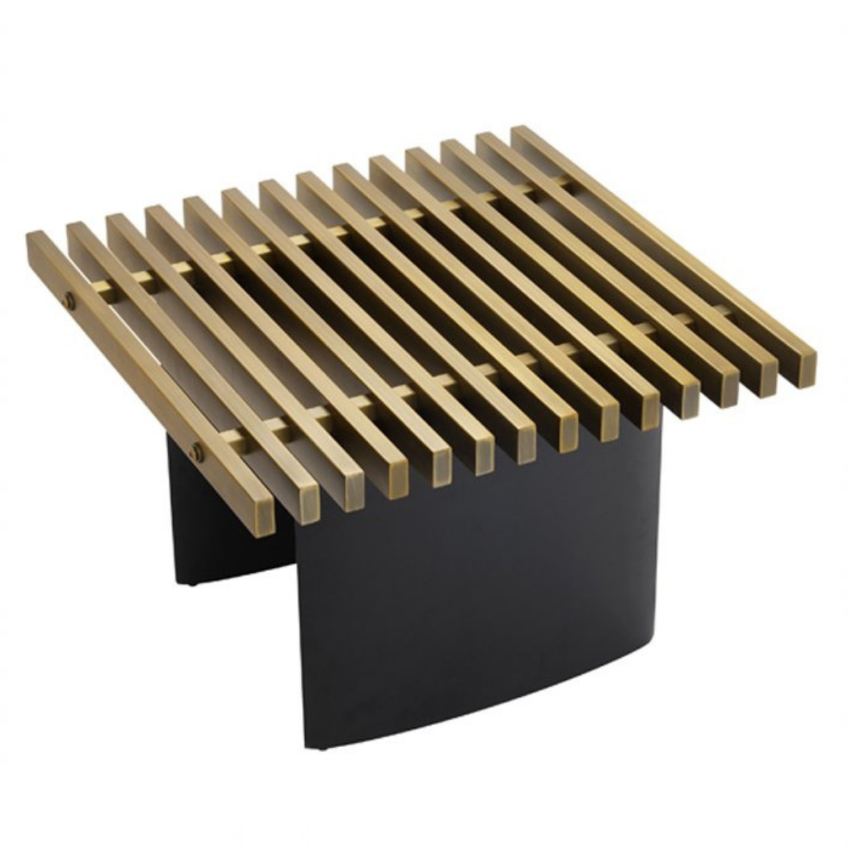 Anyone would fall in love with this Vauclair Side Table's sleek and luxurious style. The metal trellis tabletop in Brushed Brass finish adds an innovative and attractive element to the design. A slim wood leg in a Black finish makes a statement in its layout.
