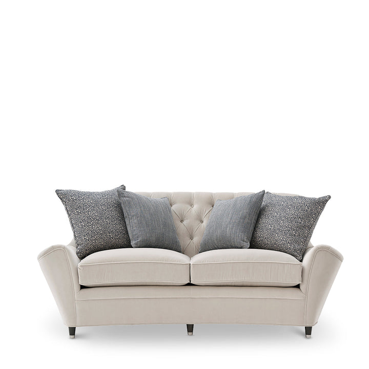 Featuring outswept arms and a tufted back, the Sine Loveseat creates the perfect cozy space that blends with your modern or contemporary interior scheme. It has two loose seat cushions and four throw pillows to ensure maximum comfort. Sitting on this sofa, you can engage in a fun conversation, binge-watch shows, or simply lay back to make the most of your leisure time.