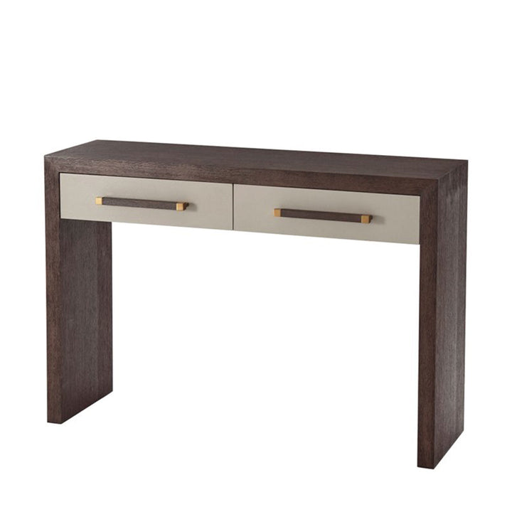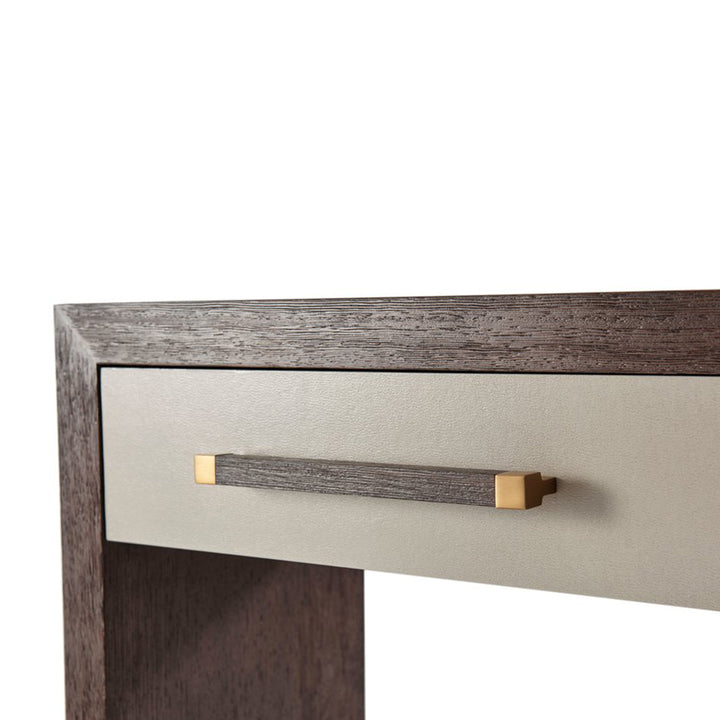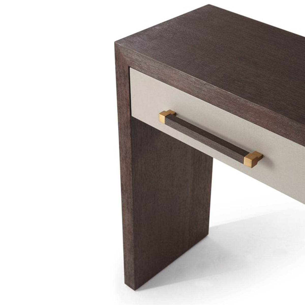 A multipurpose table that will easily fit into any space while accentuating your interiors. It has a sturdy body with adequate storage in the form of two drawers. Furthermore, the Leather-wrapped Frieze Drawers and Brushed Brass accents on the handles keep it highly stylish.