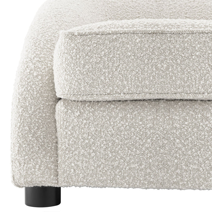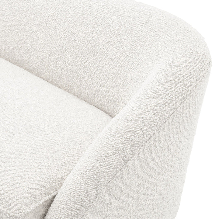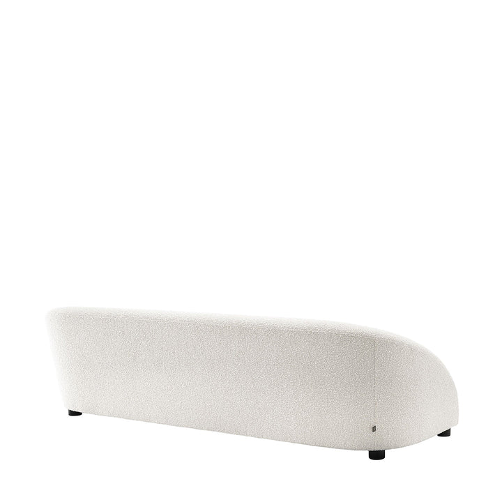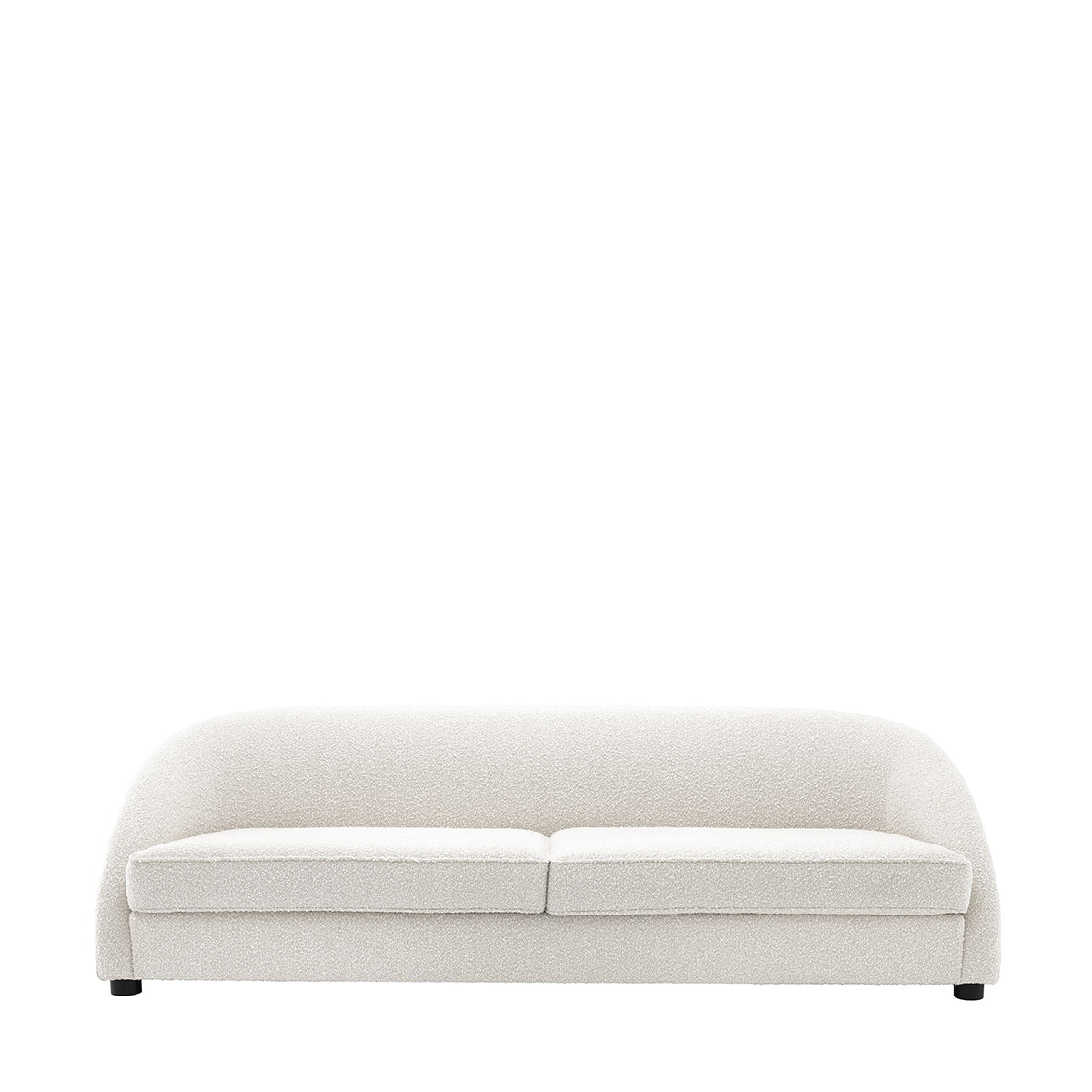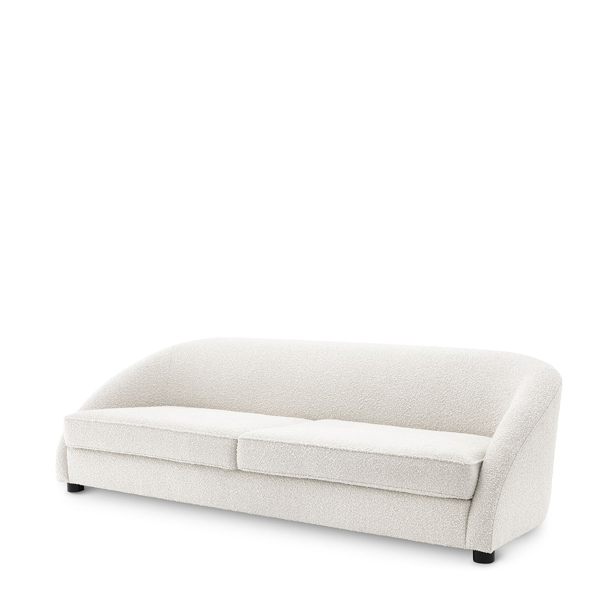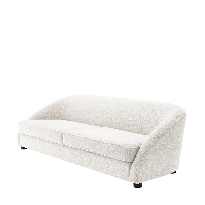 Sit in comfort and luxury with our Cruz Sofa, composed of solid wood featuring a sloped armrest and curved backrest. Boucle Cream upholstery offers a clean and smooth appearance, while the rounded black feet add drama to its muted look. This piece will infuse contemporary flair into your living space.
