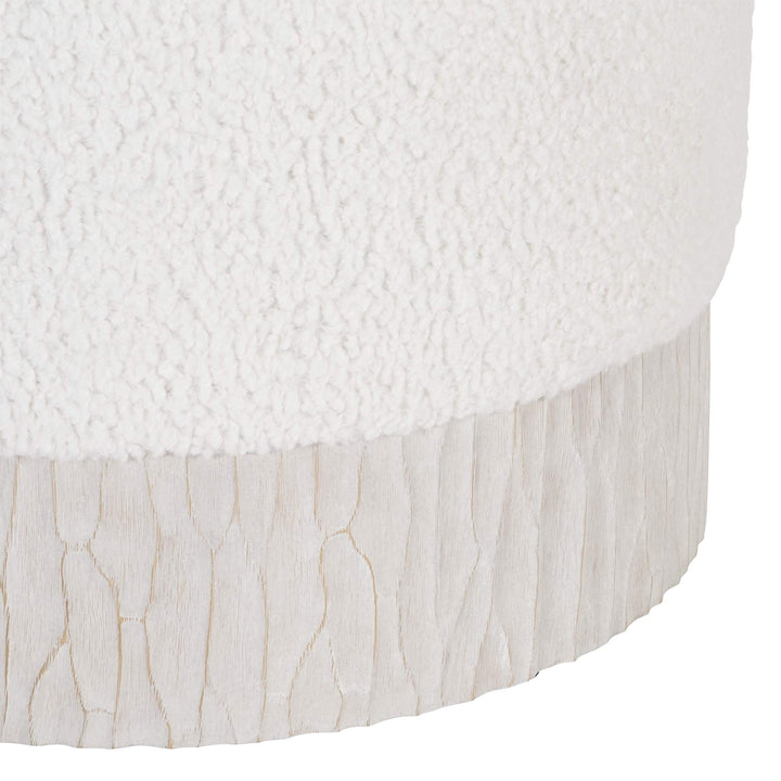Solaria ottoman is one of the unmissable furniture units in the entire Solaria collection. Easy on the eyes, the Weathered Bone finished unit is upholstered on the cushion top and sides. Below this is a cast resin base in a chiseled pattern.