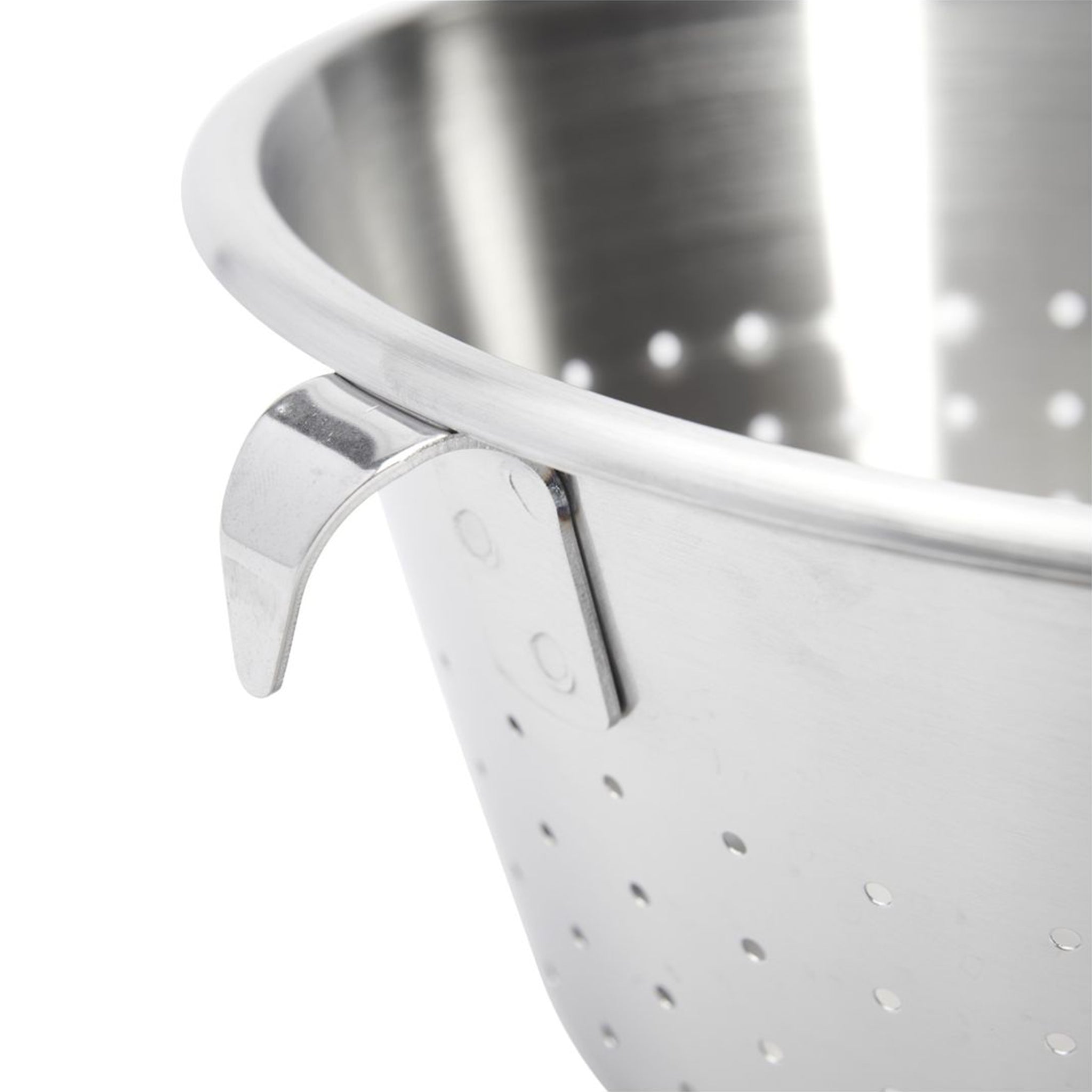 Meticulously fashioned from premium Stainless Steel, this colander flaunts a sleek inner surface, preserving ingredient freshness and crispness by preventing water retention. Boasting dual sturdy handles, it ensures secure handling and effortless mobility. Experience hassle-free draining without countertop spills, thanks to its impeccable design.