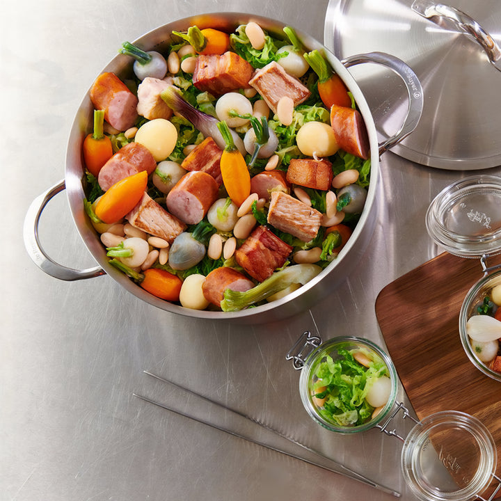 Embark on a culinary journey of excellence with the Alchimy Stewpan. Its broader round design and riveted Stainless Steel handle redefine cooking elegance. The 3-ply Stainless Steel construction guarantees even heat distribution, enabling precision in every culinary creation. Elevate your kitchen ambiance with this sophisticated stewpan, seamlessly marrying form and function. Immerse yourself in the art of cooking with Alchimy – where style converges with precision in every simmer and stir.