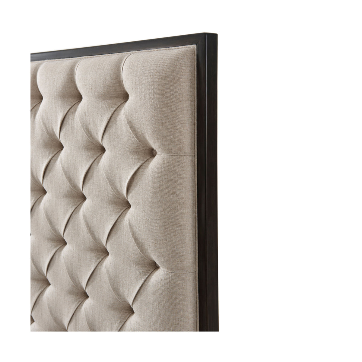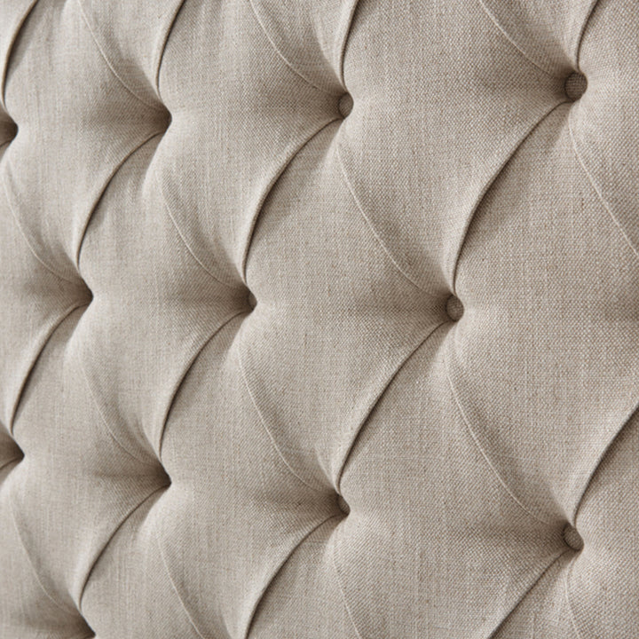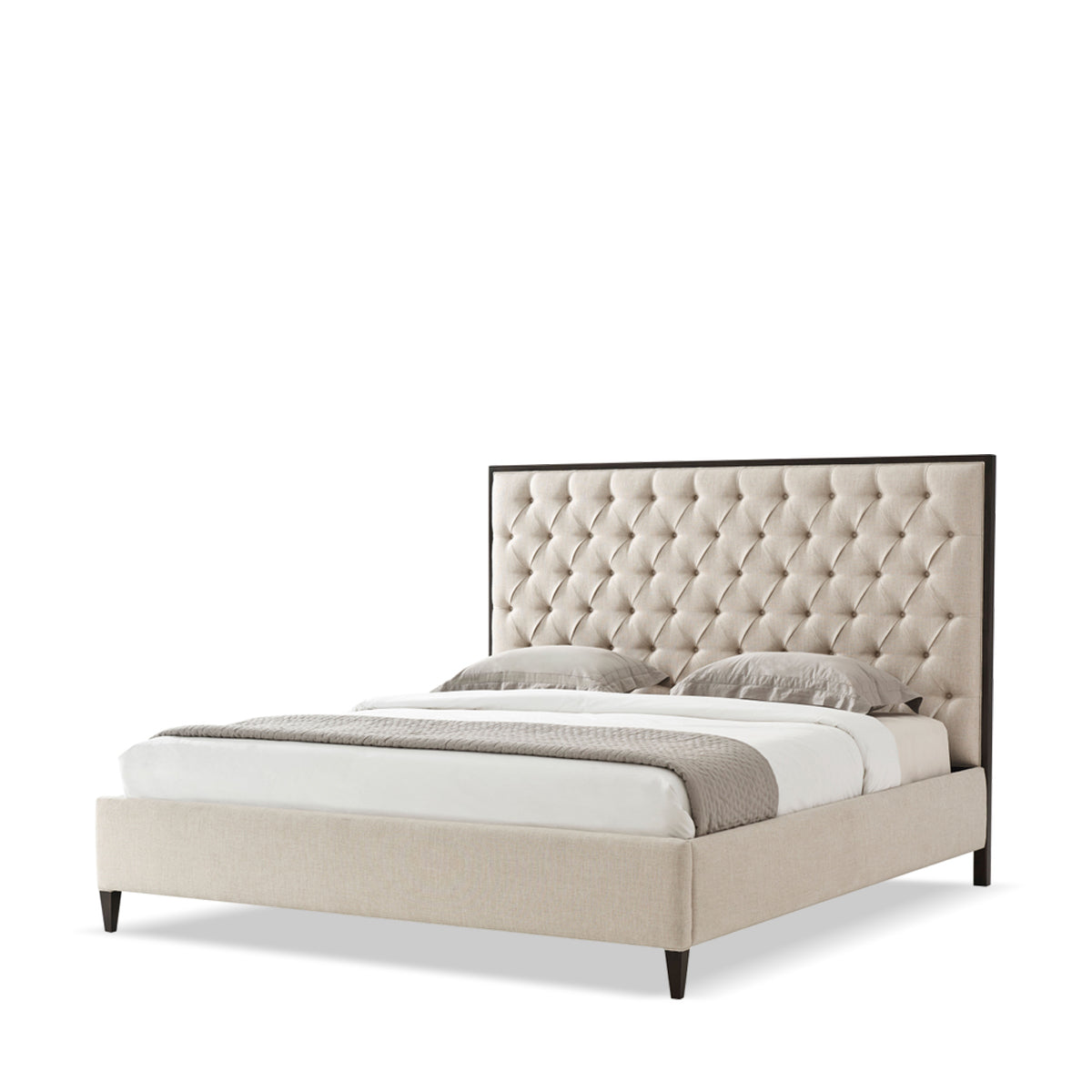 Modern furniture offering plush comfort! The plushy cream foamed headboard channel with maximum tufted points creates an extra luxury spot to calm your senses. The solid beech frame with an Ossian finish is customized effortlessly. A finely tailored cushy upholstery line builds extravaganza to this stylish statement. Block foot is a bold mark of simplicity.