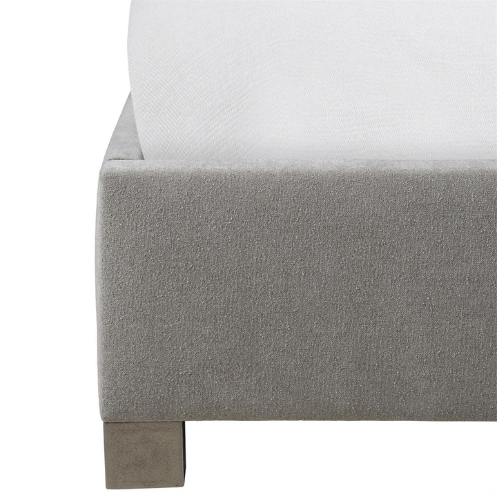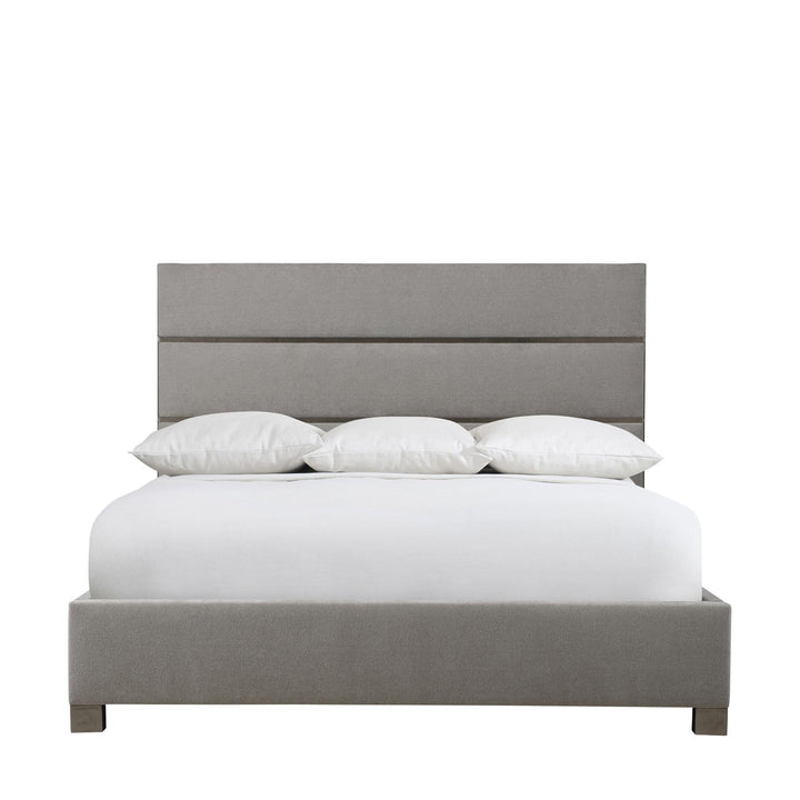Featuring three upholstered channels on the headboard along with fully upholstered side rails and footboard, the Tinsley Bed creates a cozy ambiance in the room. The Cast Aluminum panels and feet are clad in Graphite finish complementing the overall aesthetics. Its minimal yet alluring appearance makes it a must-have for your plush bedroom.