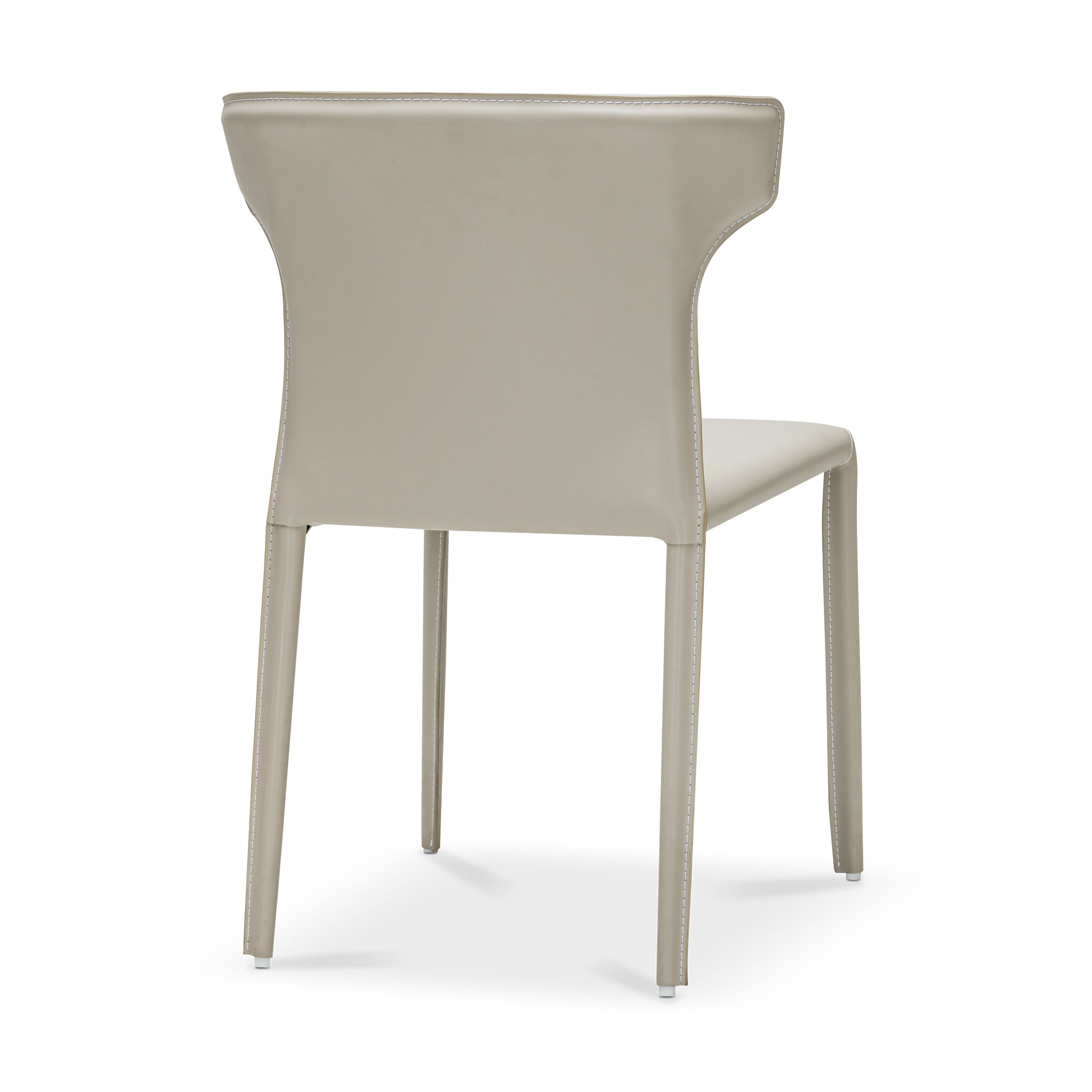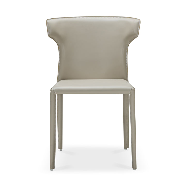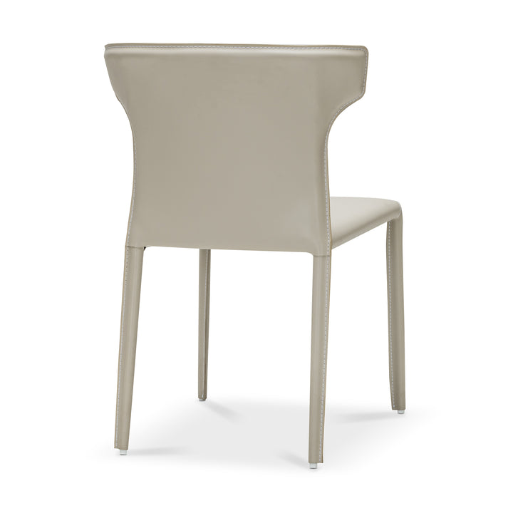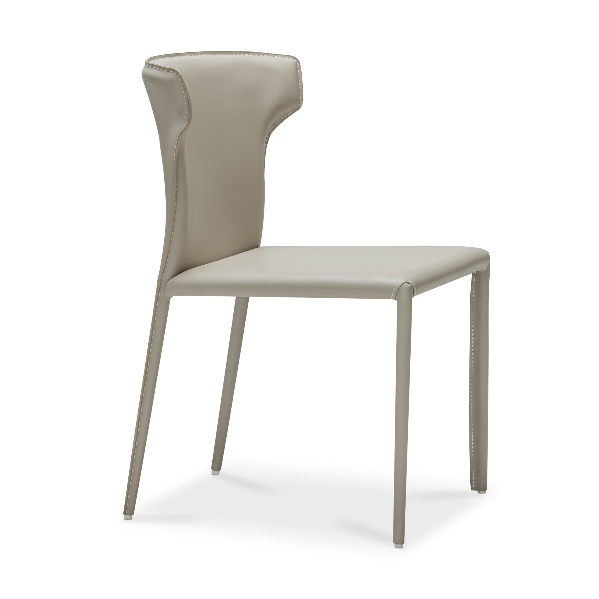 Upholstered in dark beige faux leather, the seat is smooth and tailored with precise stitching that highlights its clean lines. Fully upholstered legs complete the design, giving the chair a seamless and sophisticated presence.