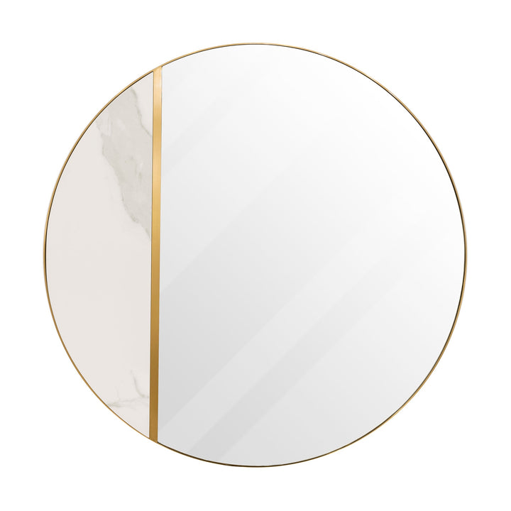 The unfull Wall Mirror is rimmed in Stainless Steel with an Electroplated Brushed Brass finish to offer intriguing visuals. A perfect blend of a Clear Mirror and Engineered White Marble makes it a bold statement for your home decor. Add this piece to the prominent wall in your living room to make your guests go wow.