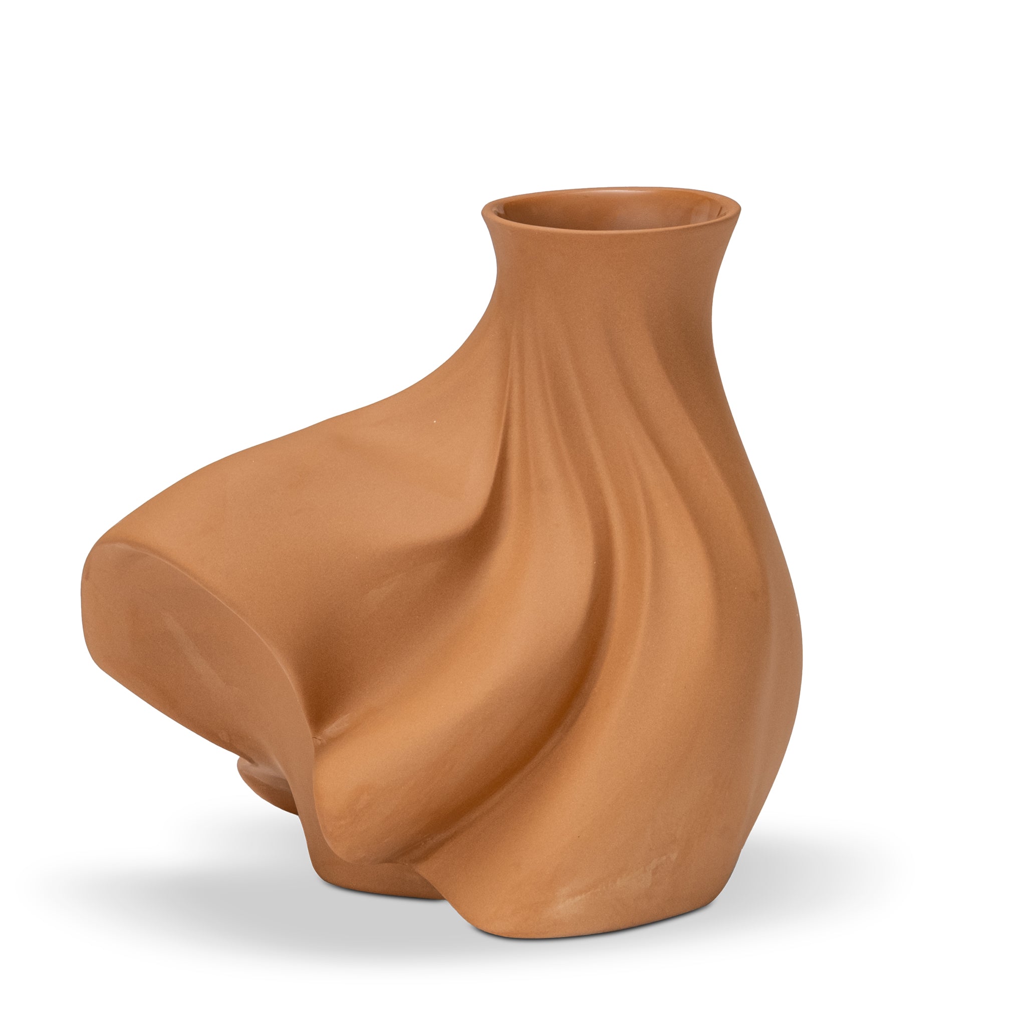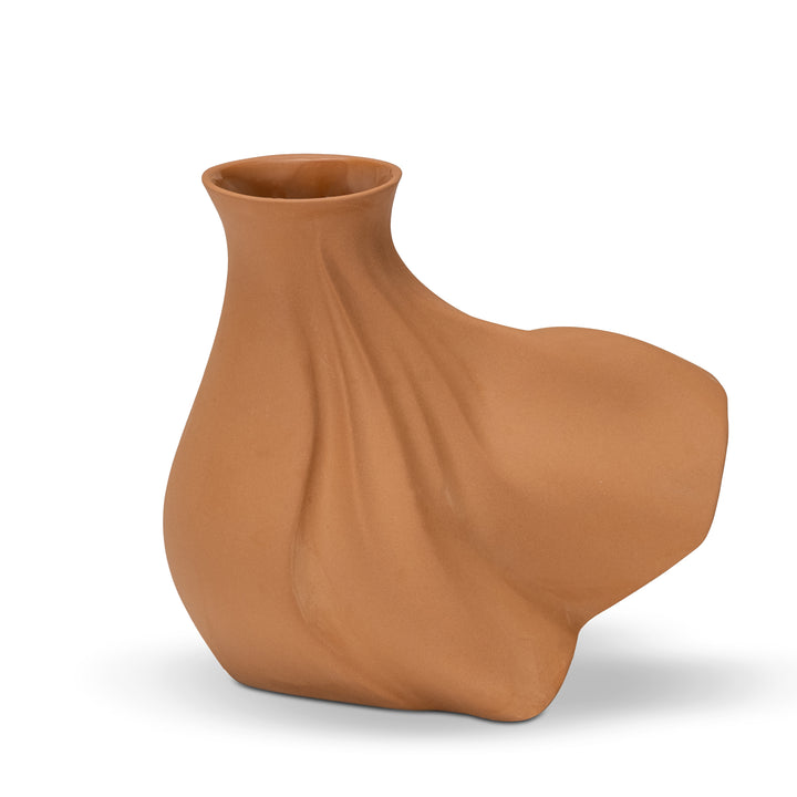 Add a touch of elegant whimsy to your decor with the Vento Ochre Petite Vase. Its artistic composition, reminiscent of gentle breezes, brings a light and airy feel to any room. Constructed from Porcelain with a Matte Ochre finish, this petite vase is perfect for small flowers or as a charming standalone piece. Enhance your home with the subtle sophistication of this uniquely designed vase.