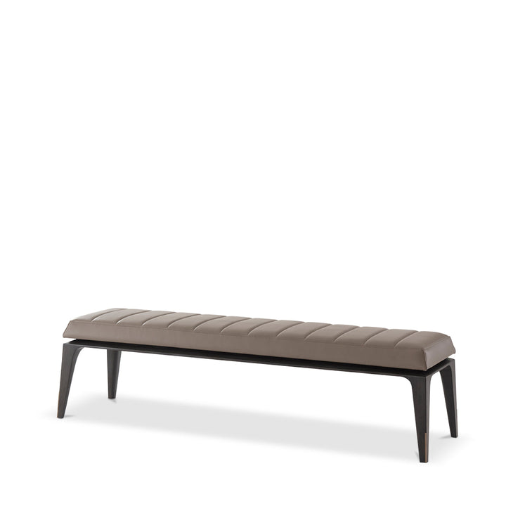 Mounted on a sleek, angular base, the Vitality Bed End Bench is crafted with Mahagony clad in Smokey Secret finish. Its channel-tufted boxed seat offers comfort while creating visual interest in the room. The legs are adorned with Stainless Steel accents in Artefact finish to complete the look, making this piece a treat for the eyes.