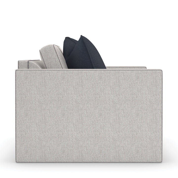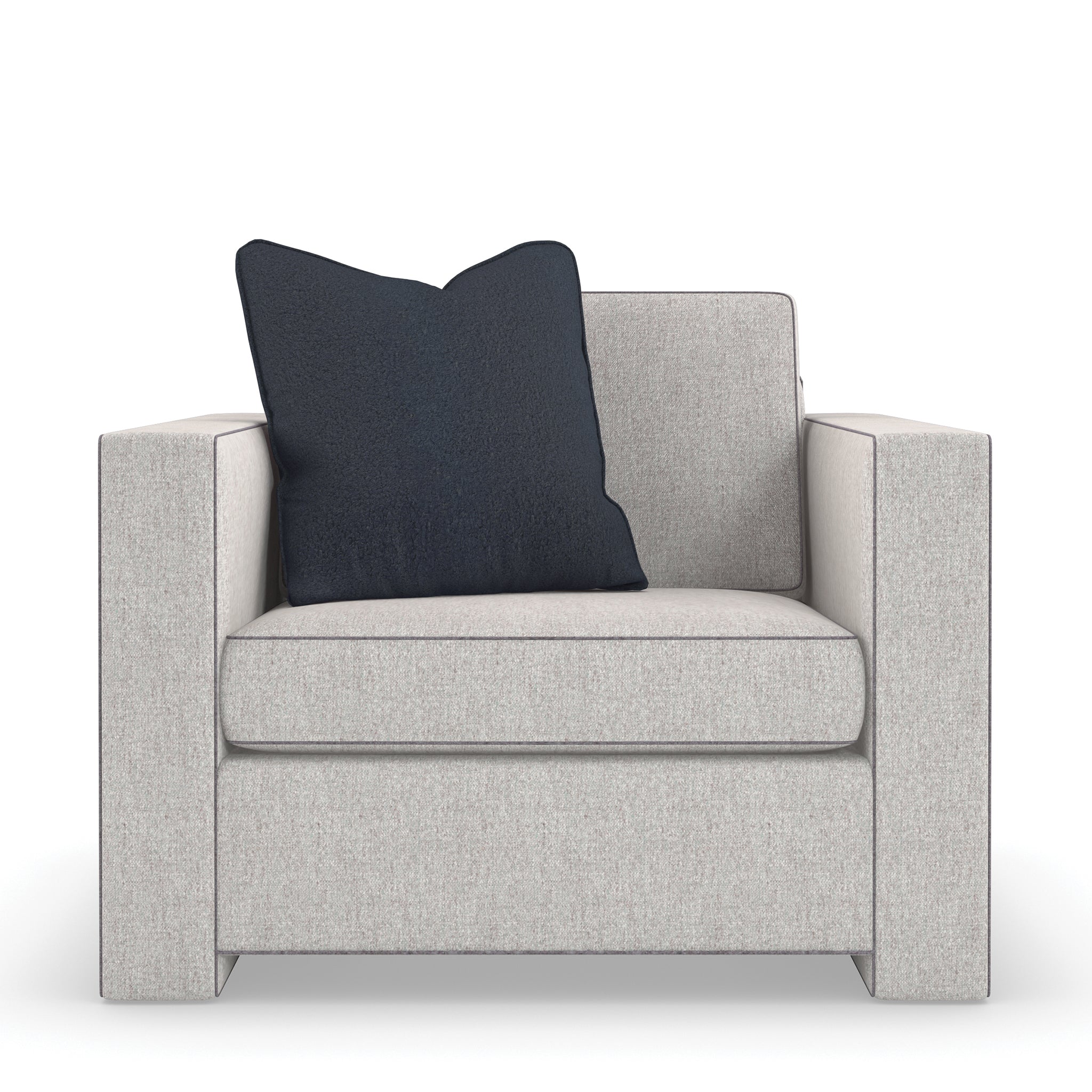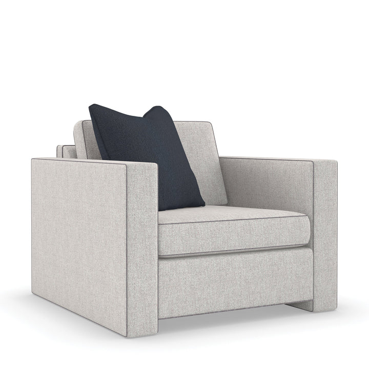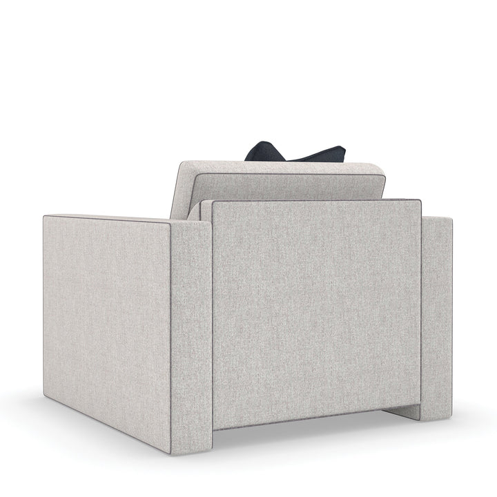 A design that speaks for itself, this chair features a clean-cut form with track arms emphasized in Charcoal Billiard welting to draw more attention. Tailored in Brushed Tweed fabric, it exudes a stylish and inviting impression. This piece infuses your decor with an understated sophistication reminiscent of the fashion week in Paris.