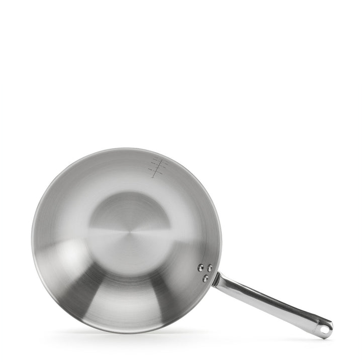 Unleash the power of precision cooking with our wok's multilayer construction. This 3-ply marvel promises superior heat retention, eliminating cold spots and delivering an even cooking surface. It features riveted Stainless Steel handle that adds a touch of refinement and ensure a secure grip, providing you with the confidence to toss and stir-fry with flair.